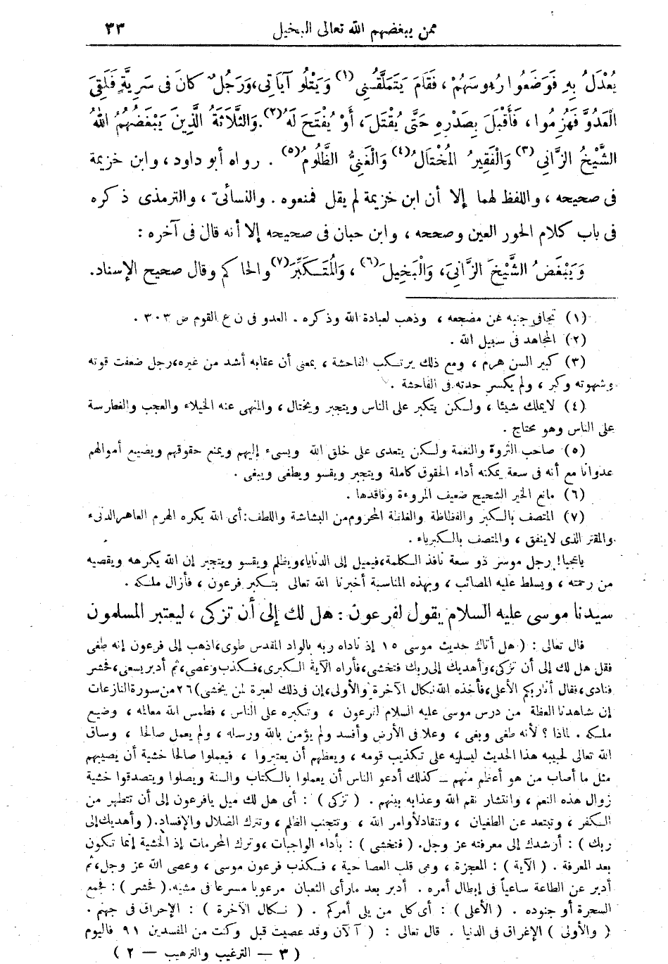 (¬7) المتصف بالكبر والفظاظة والغلظلة المحروم من البشاشة واللطف: أي الله يكره الهرم العاهر الدنيء والمقتر الذي لا ينفق، والمتصف بالكبرياء.