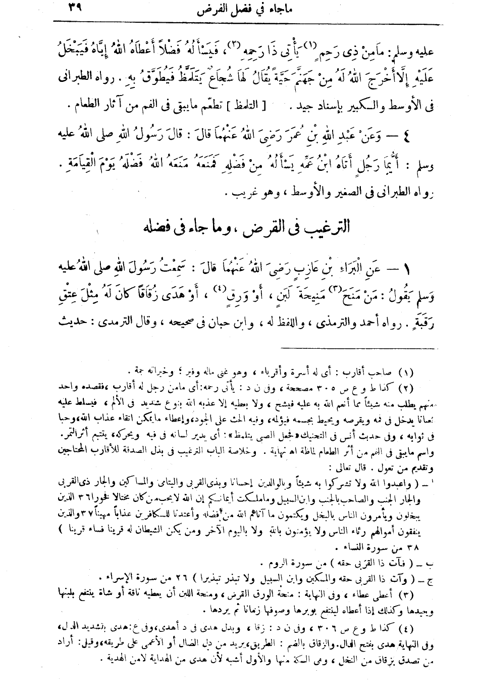 4 - وعن عبد الله بن عمر رضي الله عنهما قال: قال رسول الله صلى الله عليه وسلم: أيُّما رجلٍ أتاه ابن عمِّه يسْأله منْ فضلهِ فمنعه منعهُ الله فضْله يوم القيامة. رواه الطبراني في الصغير والأوسط، وهو غريب.