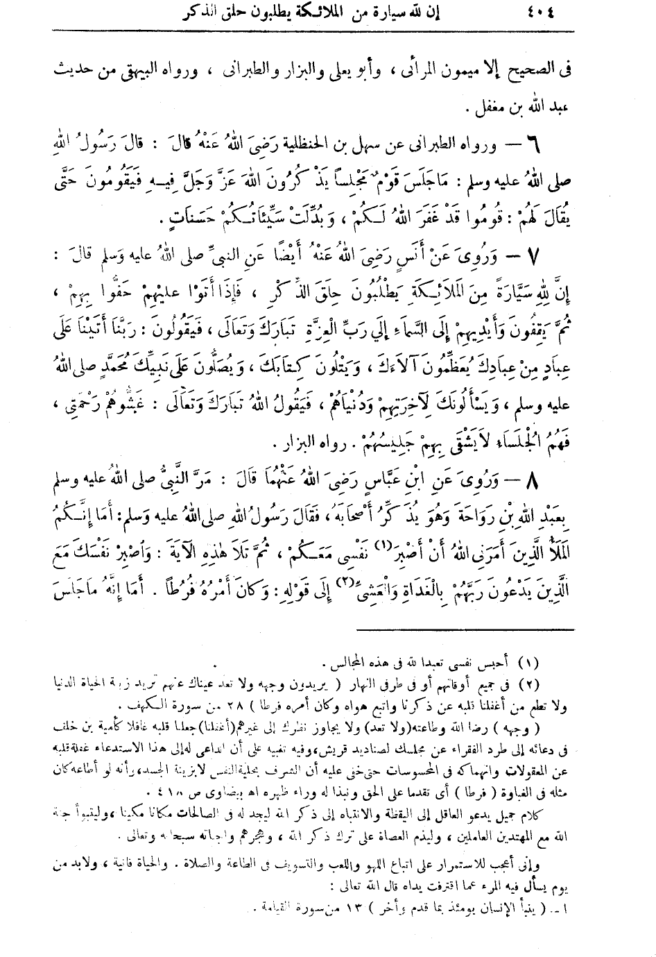 6 - ورواه الطبراني عن سهل بن الحنظلية رضي الله عنه قال: قال رسول الله صلى الله عليه وسلم: ما جلس قوم مجلساً يذكرون الله عزَّ وجلَّ فيه فيقومون حتى يقال لهمْ: قوموا قد غفر الله لكمْ، وبدَّلت سيِّئاتكم حسناتٍ.