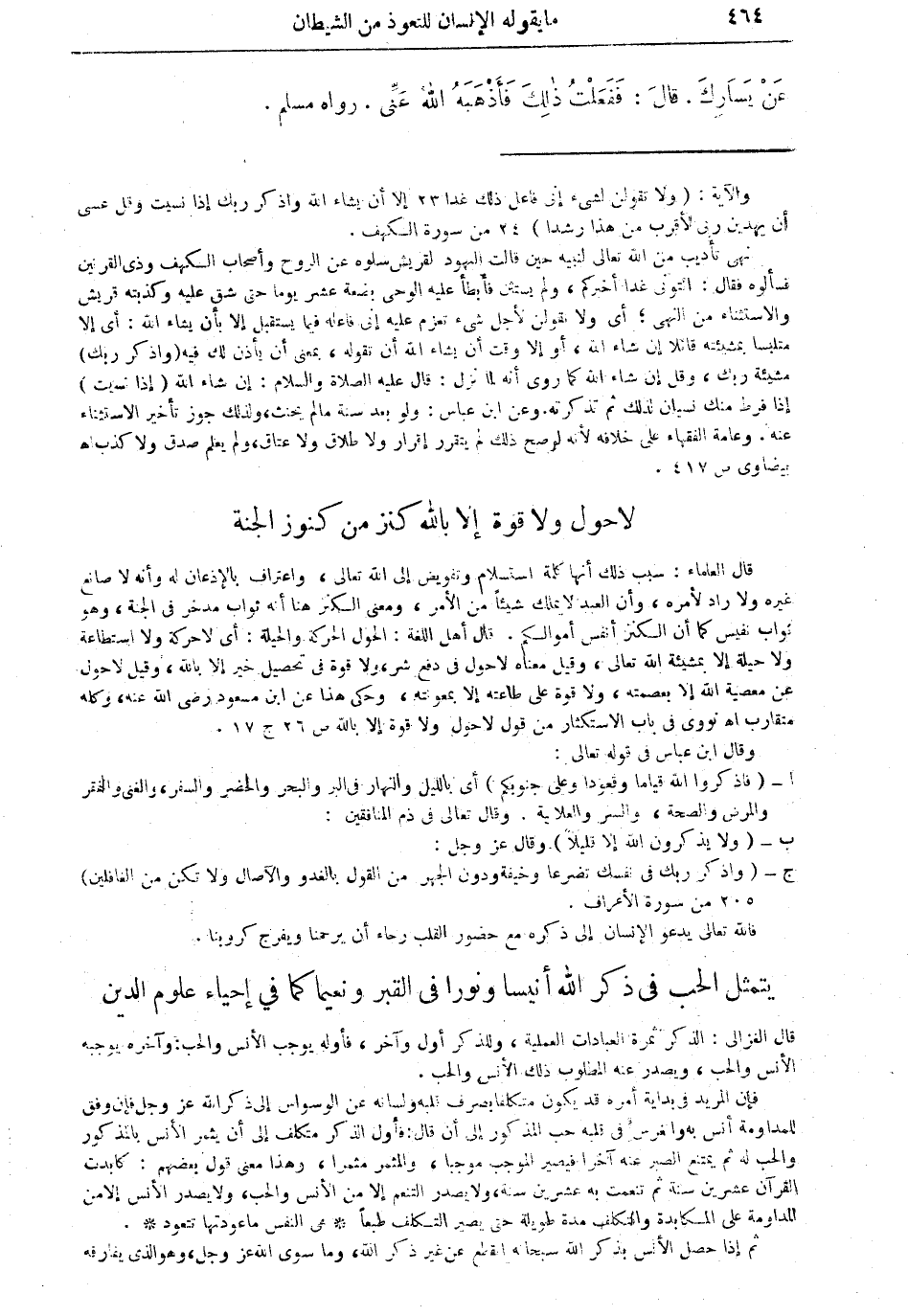 (لا حول ولا قوة إلا بالله كنز من كنوز الجنة)