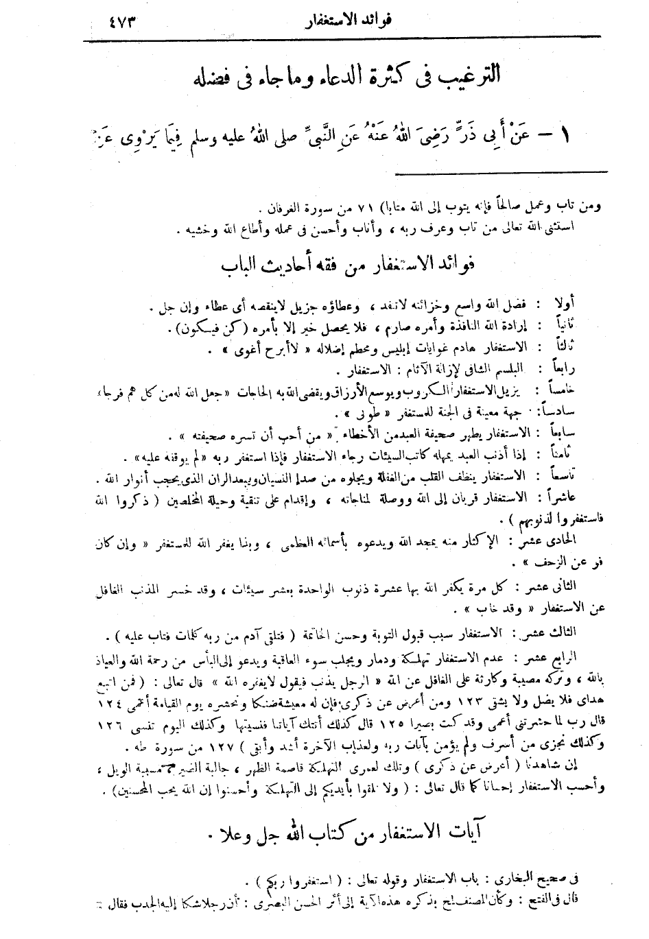 عاشراً: الاستغفار قربان إلى الله ووصلة لمناجاته وإقدام على تنقية وحيلة المخلصين (ذكروا الله فاستغفروا لذنوبهم).