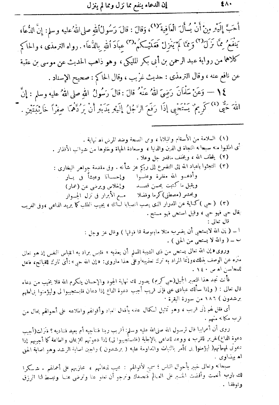14 - وعنْ سلمان رضي الله عنه قال: قال رسول الله صلى الله عليه وسلم: إنَّ الله حيى (¬4) كريمٌ يستحيي إذا رفع الرَّجل إليه يديه أن يردَّهما صفراً خائبتين.