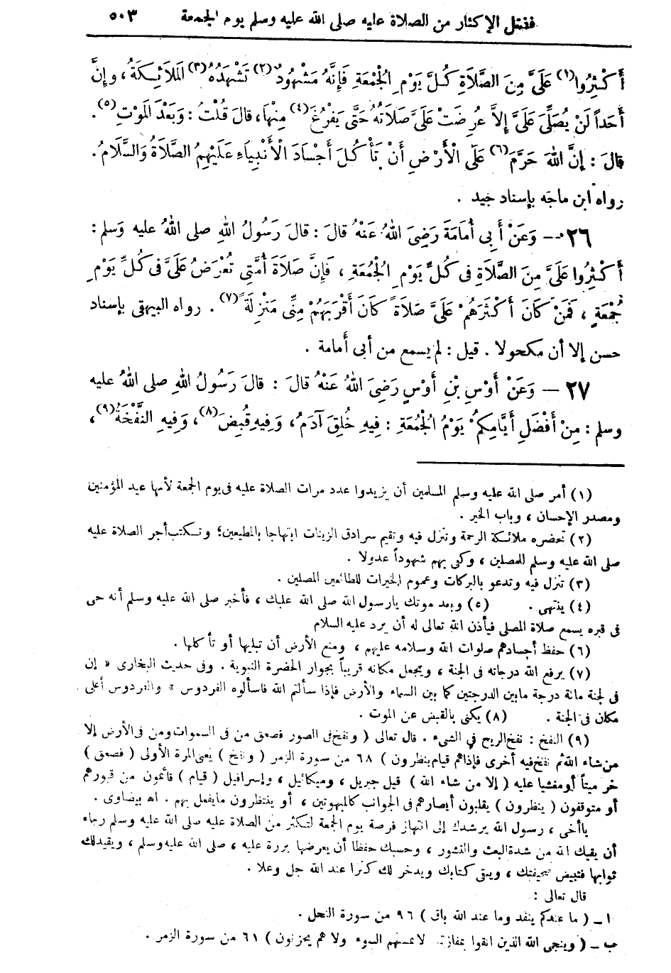 يا أخي، رسول الله يرشدك إلى انتهاز فرصة يوم الجمعة لتكثر من الصلاة عليه صلى الله عليه وسلم رجاء أن يقيك الله من شدة البعث والنشور، وحسبك حفظا أن يعرضا بررة عليه، صلى الله عليه وسلم، ويقيد لك ثوابها فتبيض صحيفتك، ويبقى كتابك ويدخر لك كنزا عند الله جل وعلا.