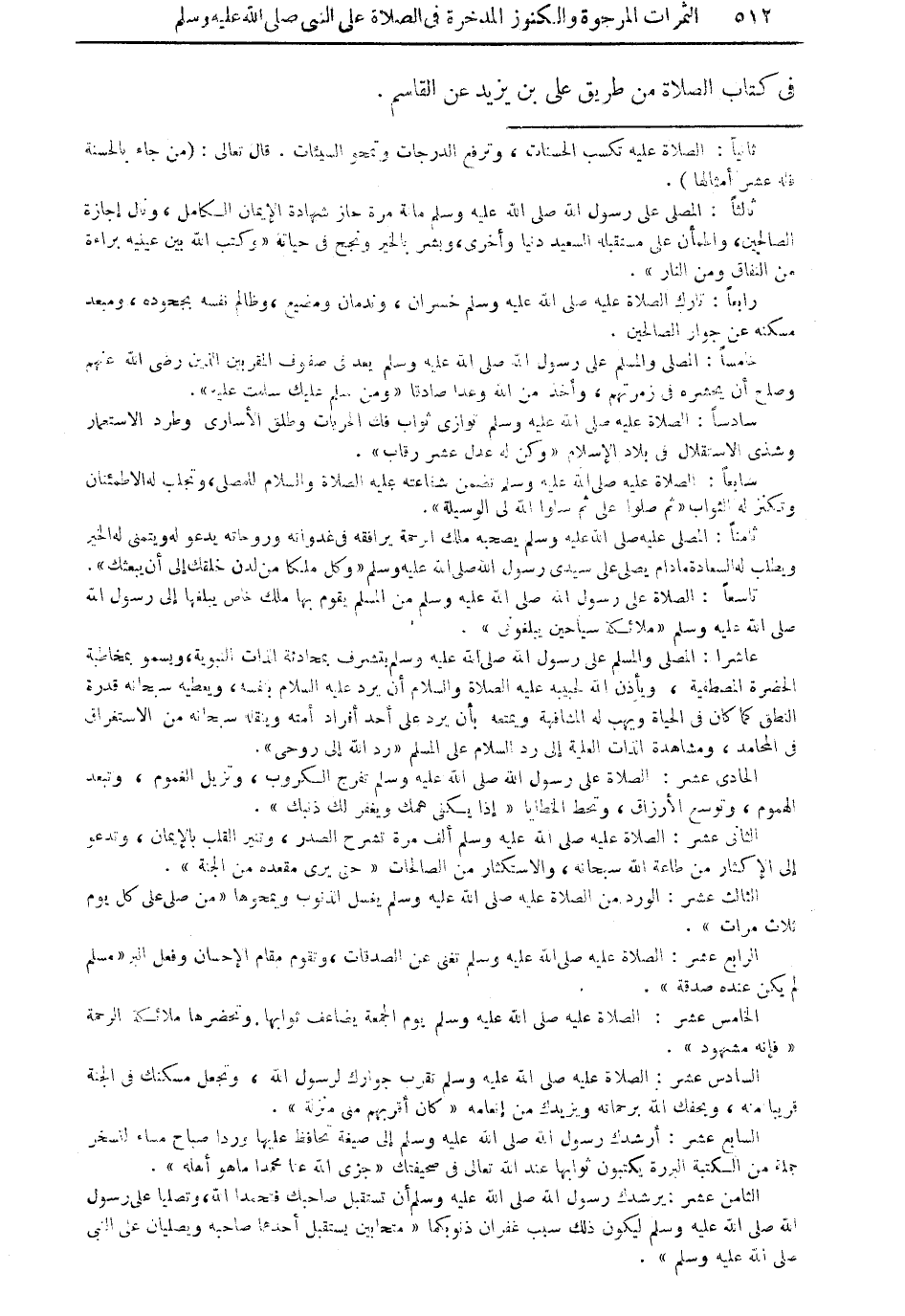 الثالث عشر: الورد من الصلاة عليه صلى الله عليه وسلم يغسل الذنوب وبمحوها (من صلى على كل يوم ثلاث مرات).