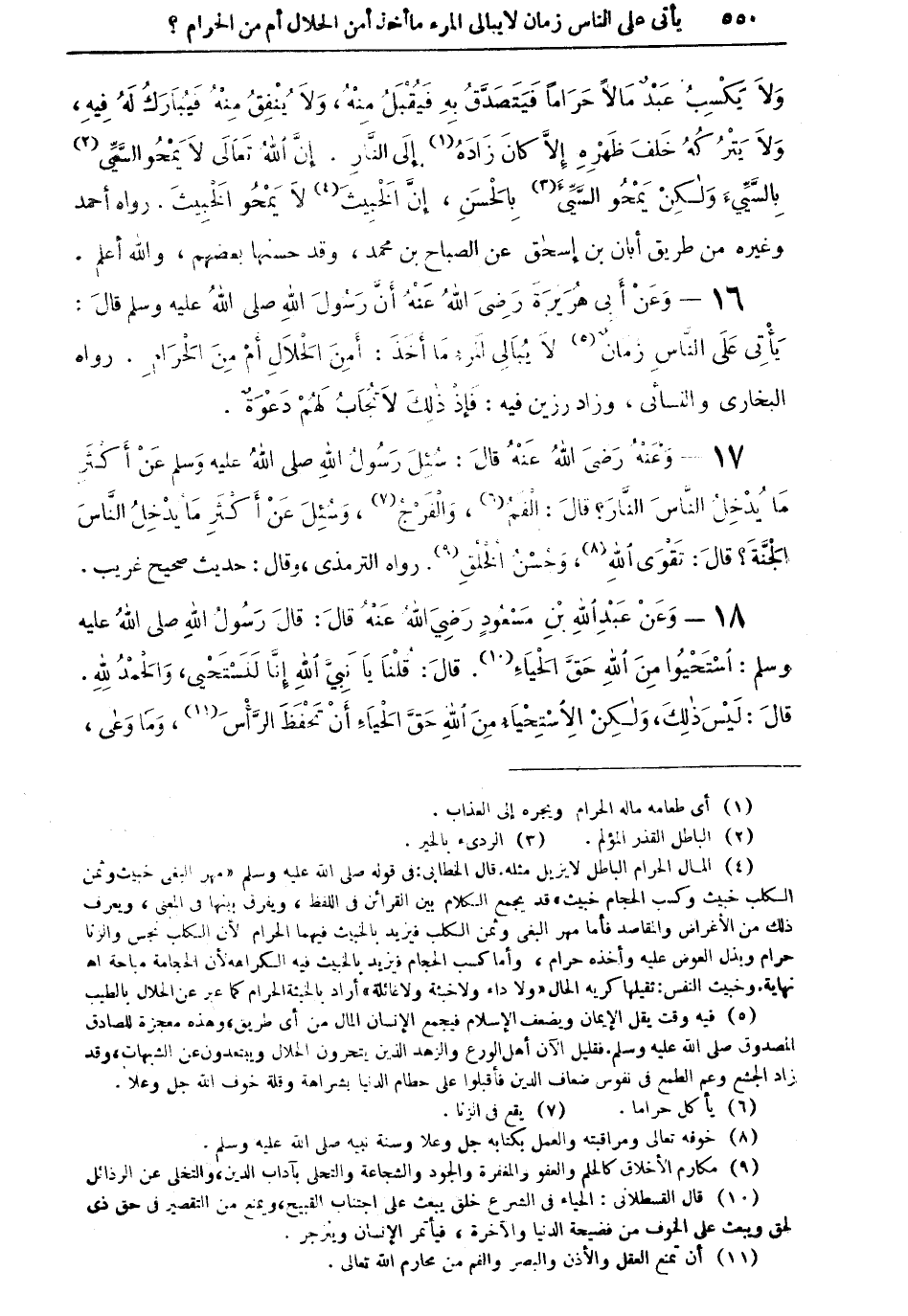 18 - وعن عبد الله بن مسعودٍ رضي الله عنه قال: قال رسول الله صلى الله عليه وسلم: استحيوا من الله حقَّ الحياء (¬10). قال: قلنا يا نبيِّ الله إنا لنستحي، والحمد لله.