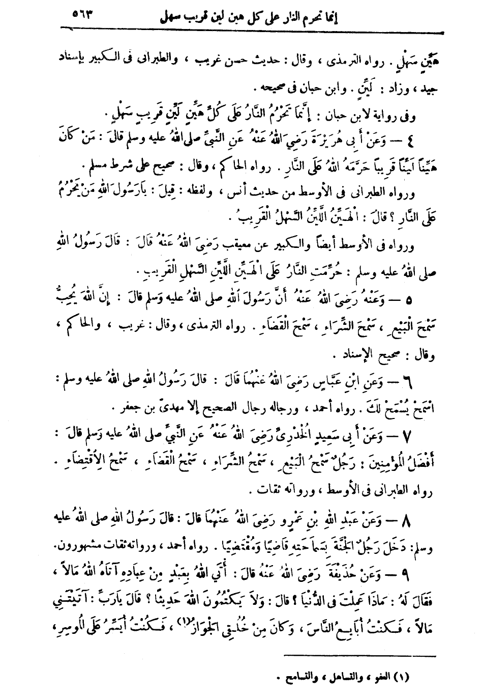 8 - وعن عبد الله بن عمرٍ رضي الله عنهما قال: قال رسول الله صلى الله عليه وسلم: دخل رجلٌ الجنَّة بسماحته قاضياً ومقتضياً. رواه أحمد، ورواته ثقات مشهورون.