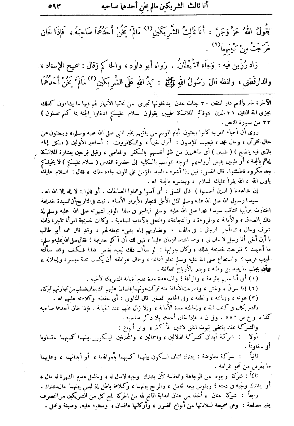 يقول الله عزَّ وجلَّ: أنا ثالث الشَّريكين (¬1) ما لمْ يخنْ أحدهما صاحبه، فإذا خان خرجت من بينهما (¬2).