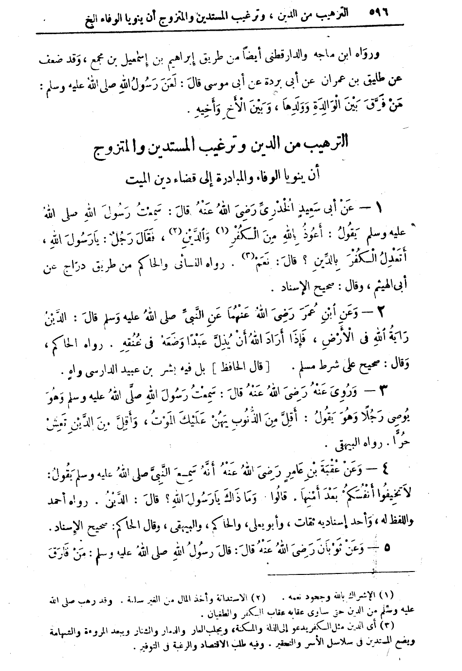 الترهيب من الدين وترغيب المستدين والمتزوج