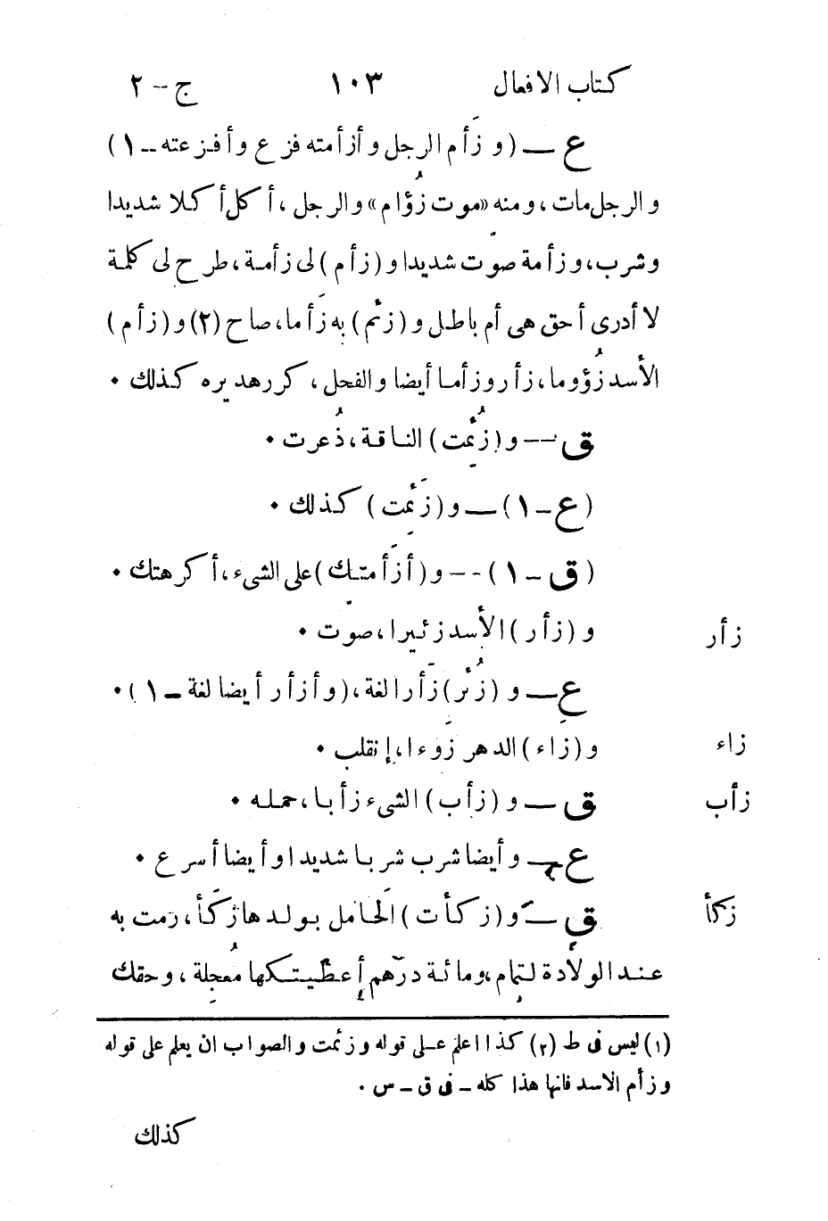 2 كذا اعلم على قوله وزئمت والصواب أن يعلم على قوله وزأم الأسد فإنها كله في ق- س.