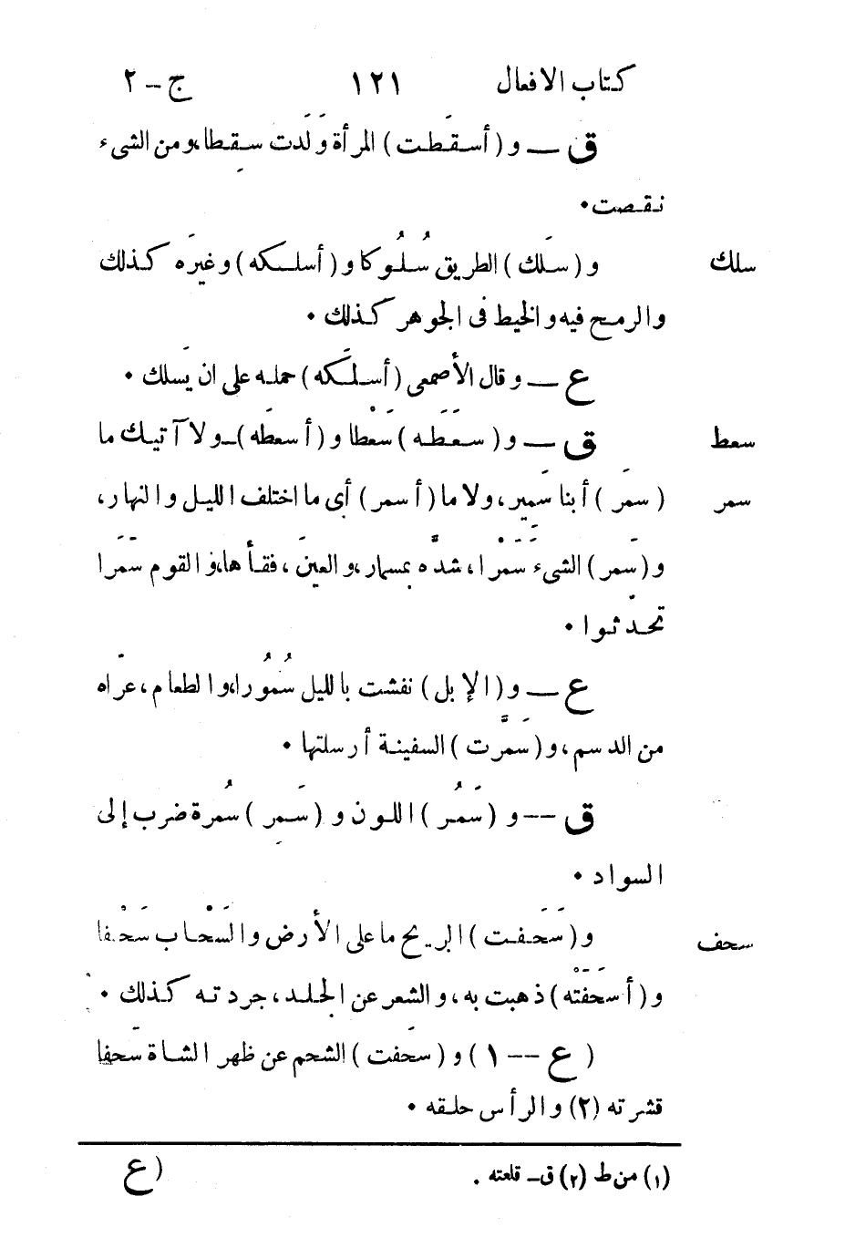ع - وقال الأصمعي "أسلَكه" حمله على أن يَسلك.