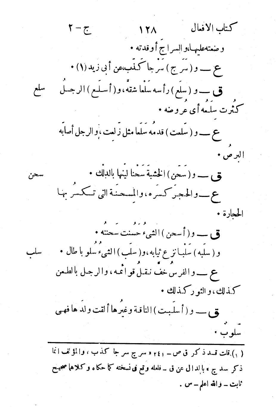 1 قلت قد ذكر ق ص 241 سرج سرجا كذب والمؤلف إنما ذكر سرج بالدال عن ق فلعله وقع في نسخته كما حكاه وكلاهما صحيح ثابت والله أعلم- س.