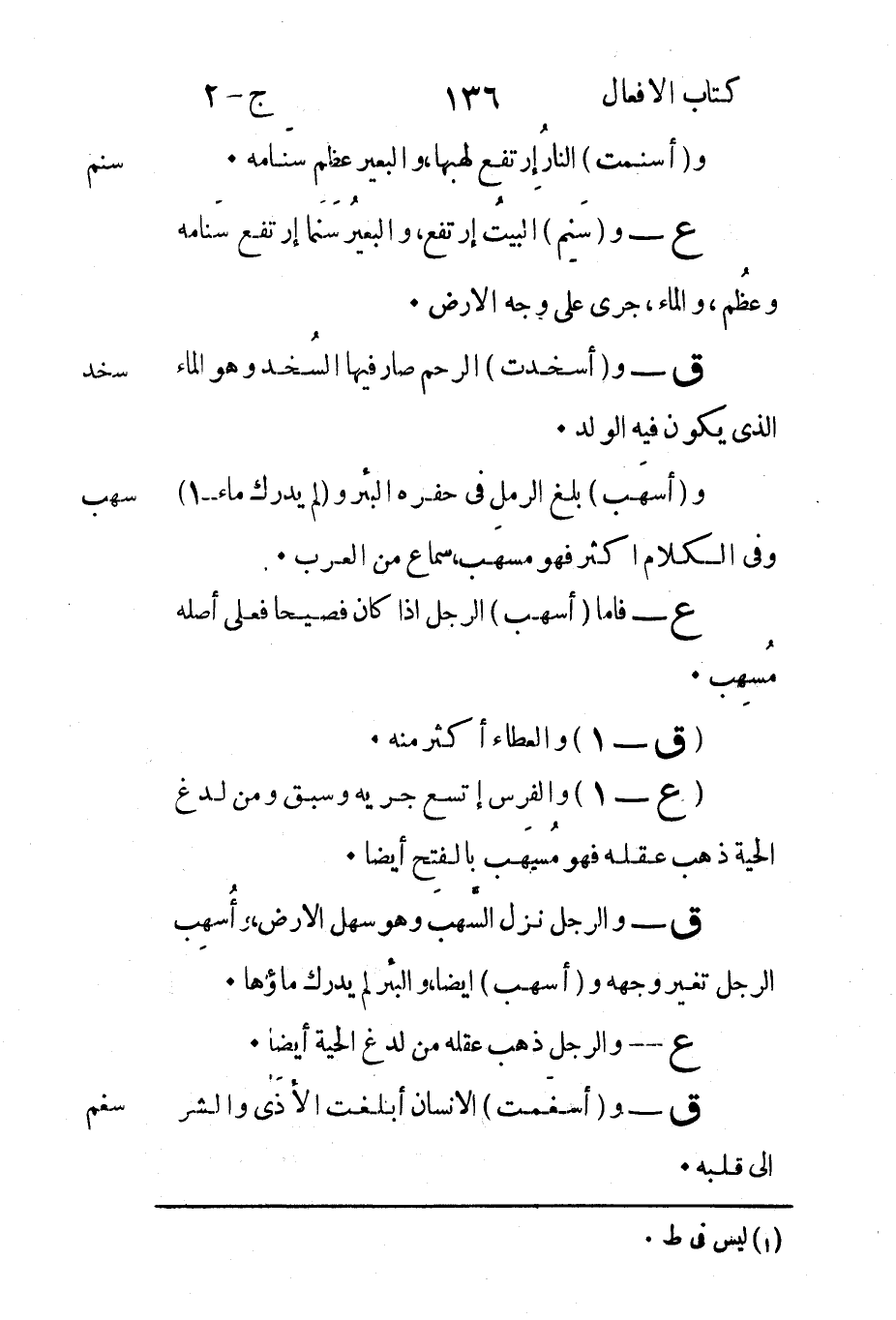 ع - فأما "أسهب" الرجل إذا كان فصيحا فعلى أصله مُسهِب.