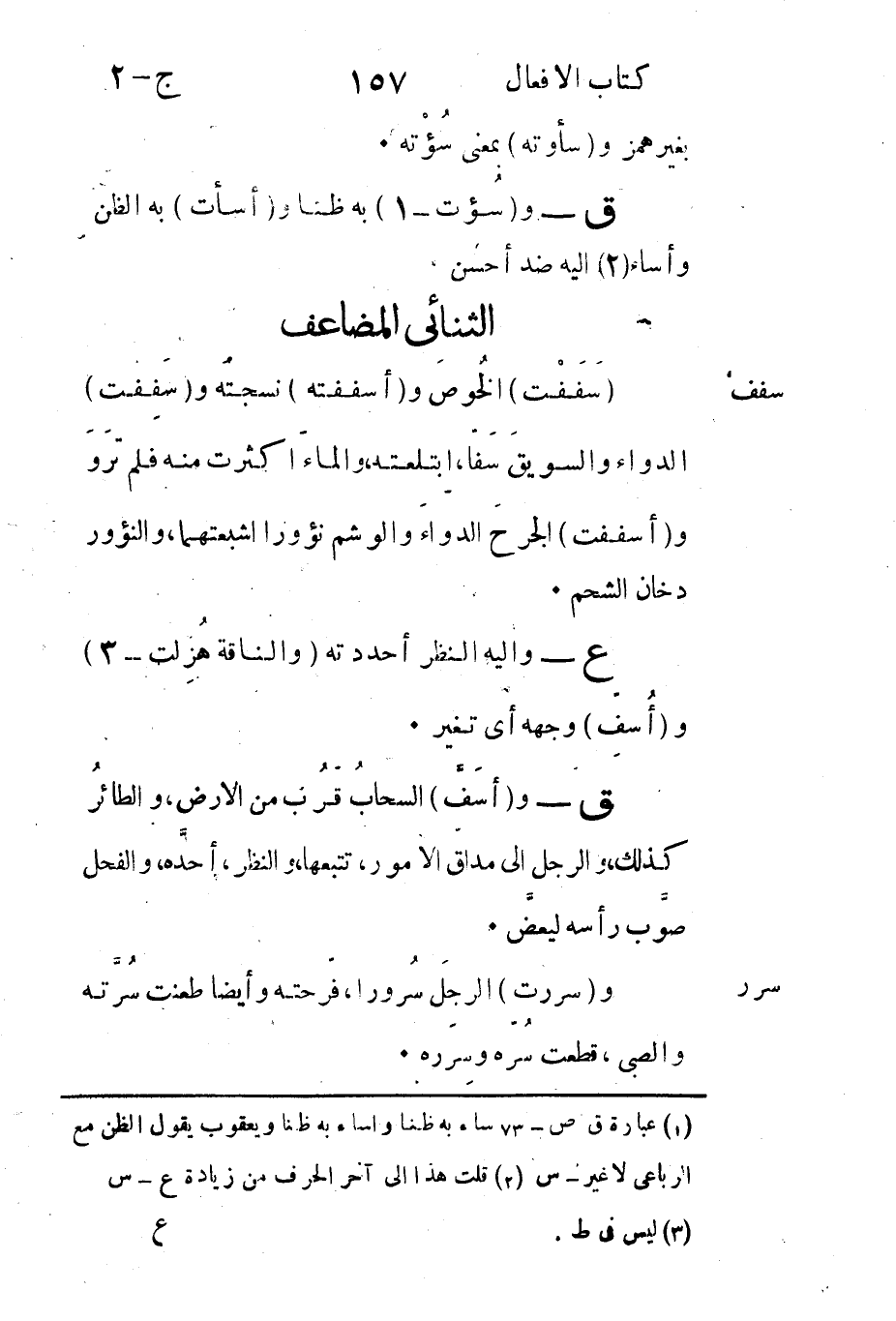 1 عبارة ق ص 73 ساء به ظنا وأساء به ظنا ويعقوب يقول الظن مع الرباعي لا غير - س.