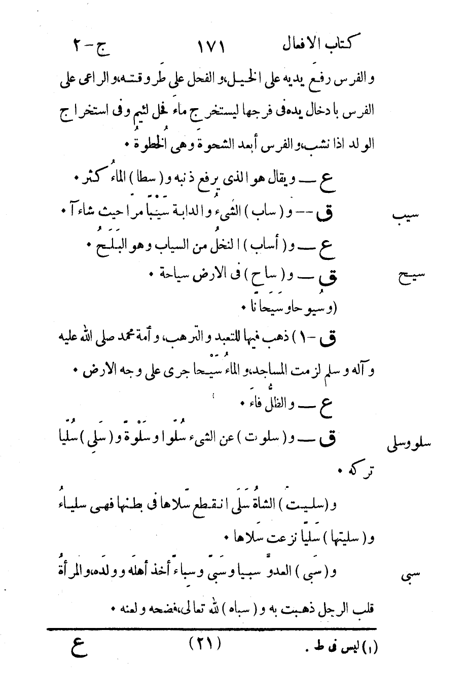 و"سليتَ" الشاةُ سَلَى انقطع سَلاها في بطنها فهي سلياءُ و"سليتها" سَليًا نزعت سَلاها.