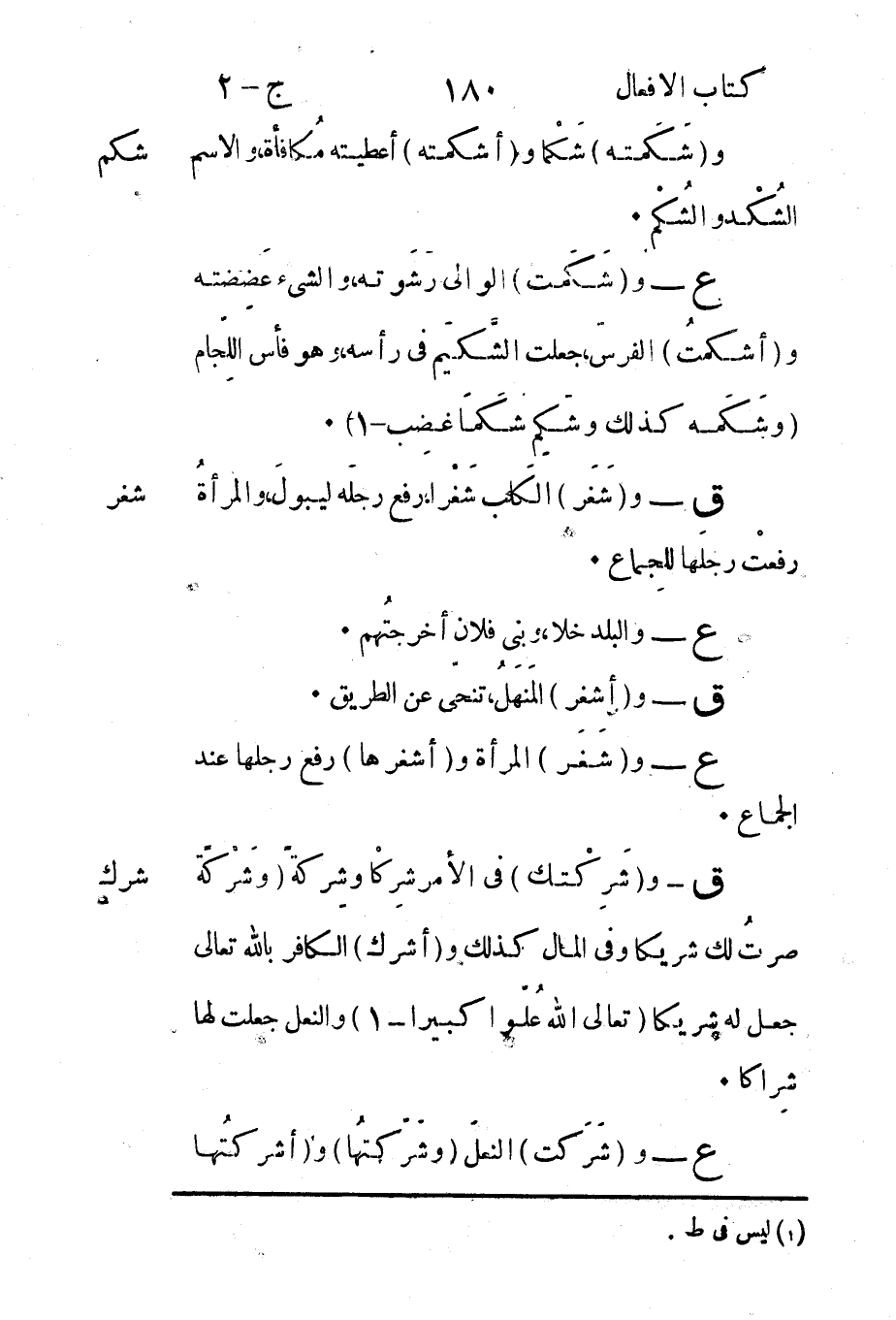 ع - و"شَرَكت" النعلَ "وشَرَكتُها" و"أشركتُها.