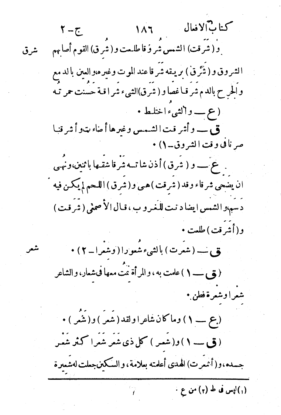 ق -1 و"شَعِر" كل ذي شَعَر شَعَرا كثر شَعْر جسده و"أشعَرت" الهدى أعلمته بعلامة والسكين جعلت له شَعِيرة.