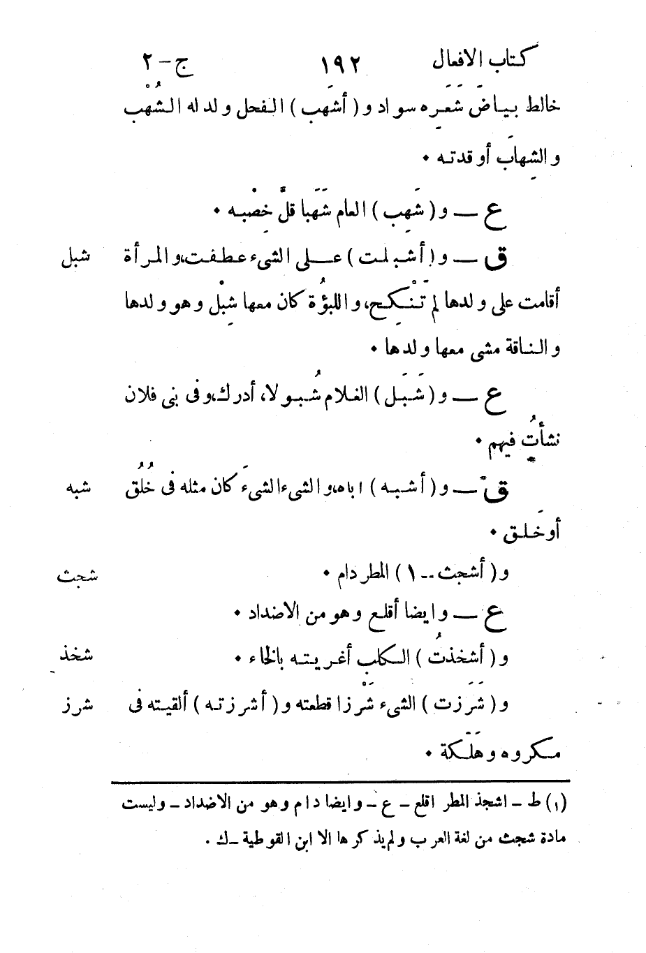 ع - و"شَهِب" العام شَهَبا قلَّ خِصْبه.