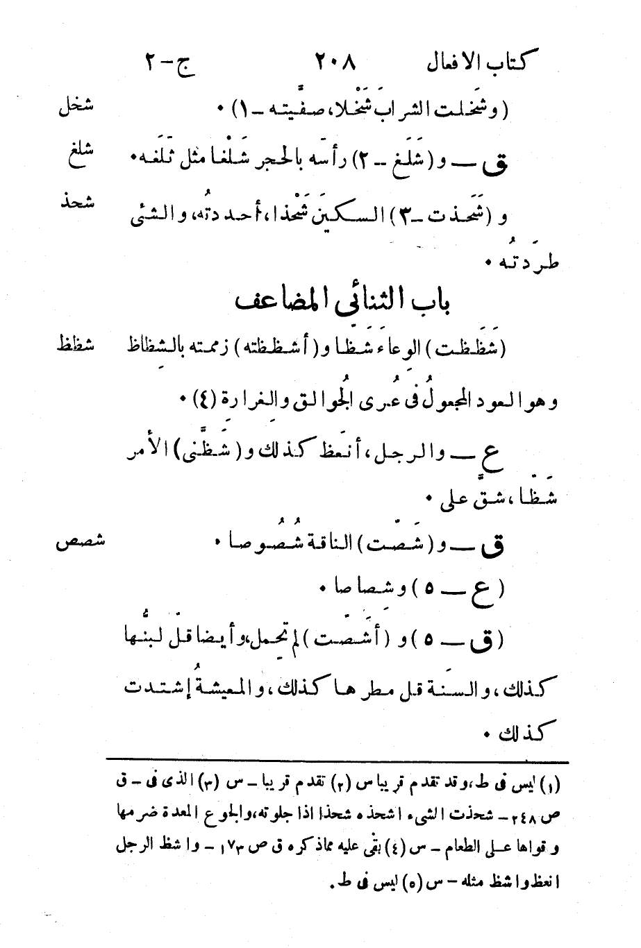 ق -5 و"أشَصّت" لم تحمِل وأيضا قلّ لبنُها كذلك والسَنة قل مطرها كذلك والمعيشةُ إشتدت كذلك.