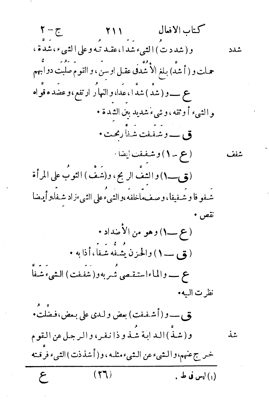 ع - والماء استقضى شُربه و"شَفَفت" الشيءَ شَفاَّ نظرت إليه.