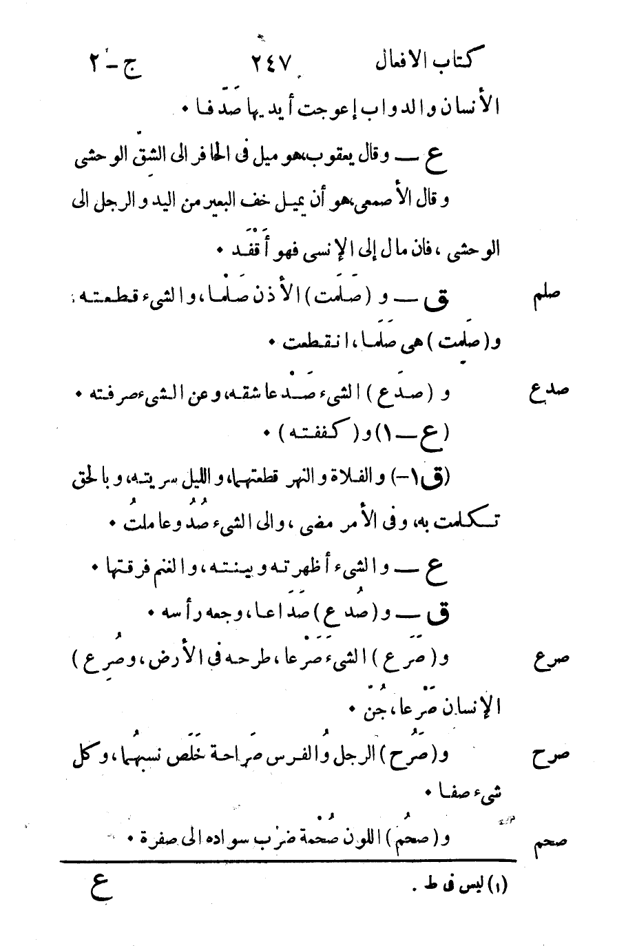 ق -1 والفلاة والنهر قطعتهما والليل سريته وبالحق تكلمت به وفي الأمر مضى والى الشيء صُدُوعا ملتُ.