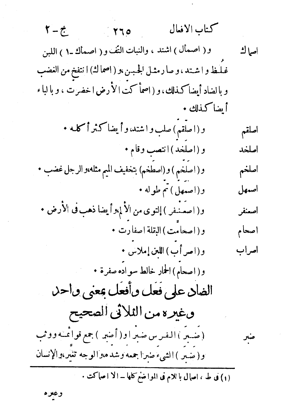 1 في ط اصمأل باللام في المواضع كلها إلا اصماكت.