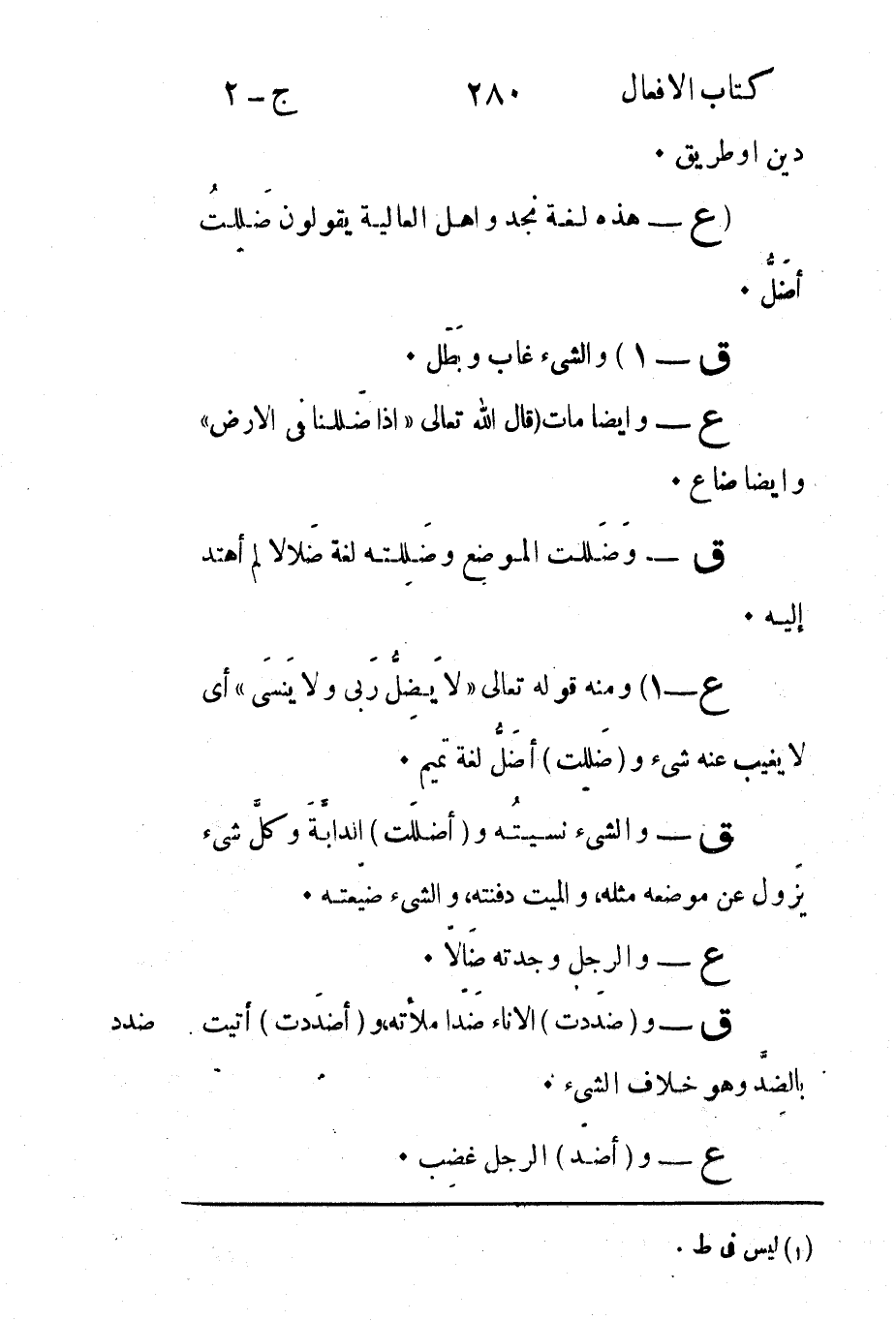ع - هذه لغة نجد أهل العالية يقولون ضَلِلتُ أضَلُّ.