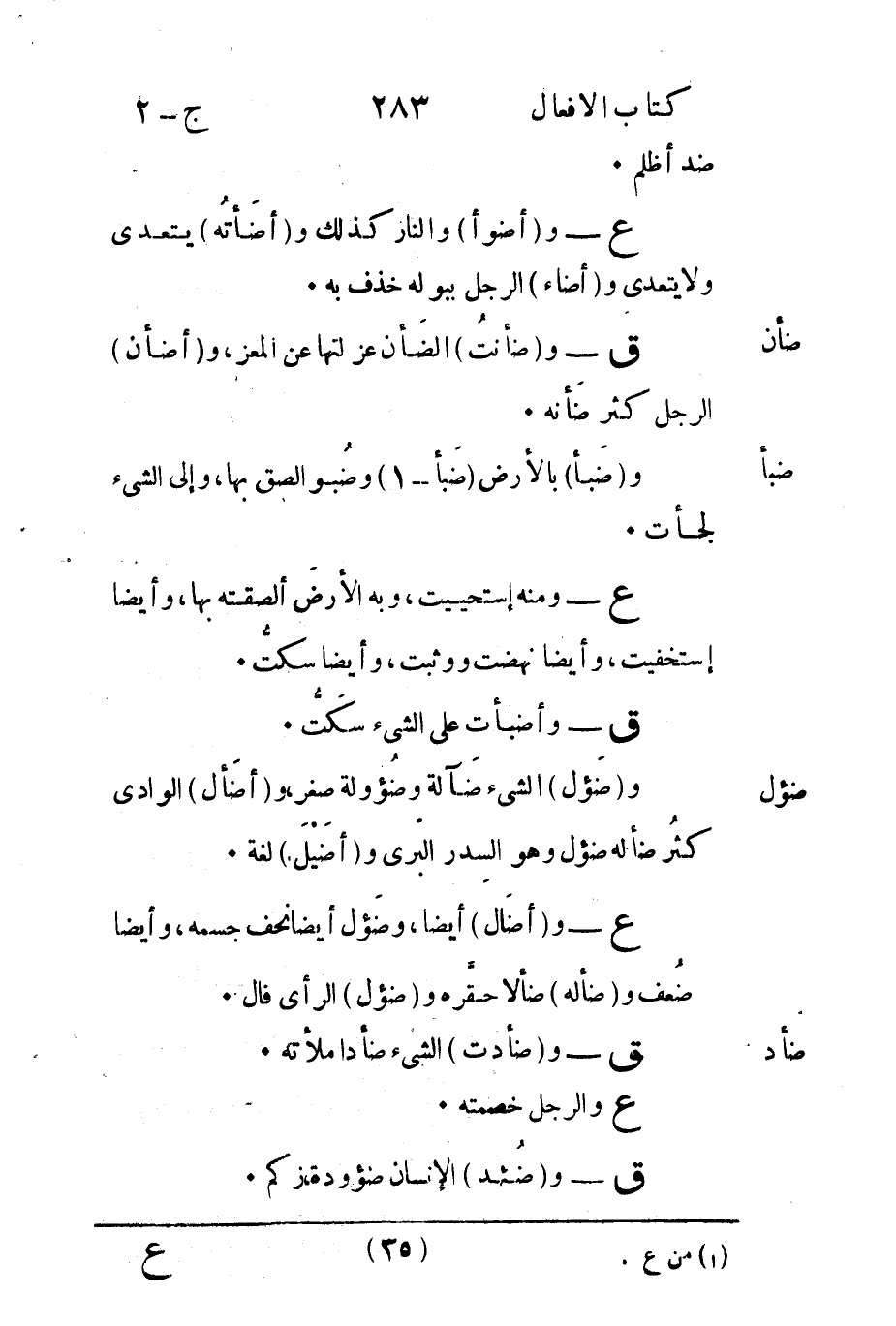 ع - و"أضوأ" والنار كذلك و"أضأتُه" يتعدى ولا يتعدى و"أضاء" الرجل ببوله حذف به.