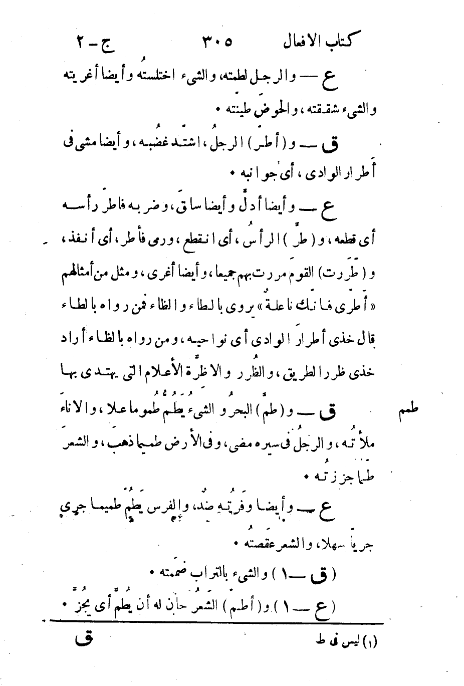ع - وأيضا وفَرتُه ضٌد والفرس يَطُمّ طميما جرى جرياً سهلا والشعر عَقصتُه.