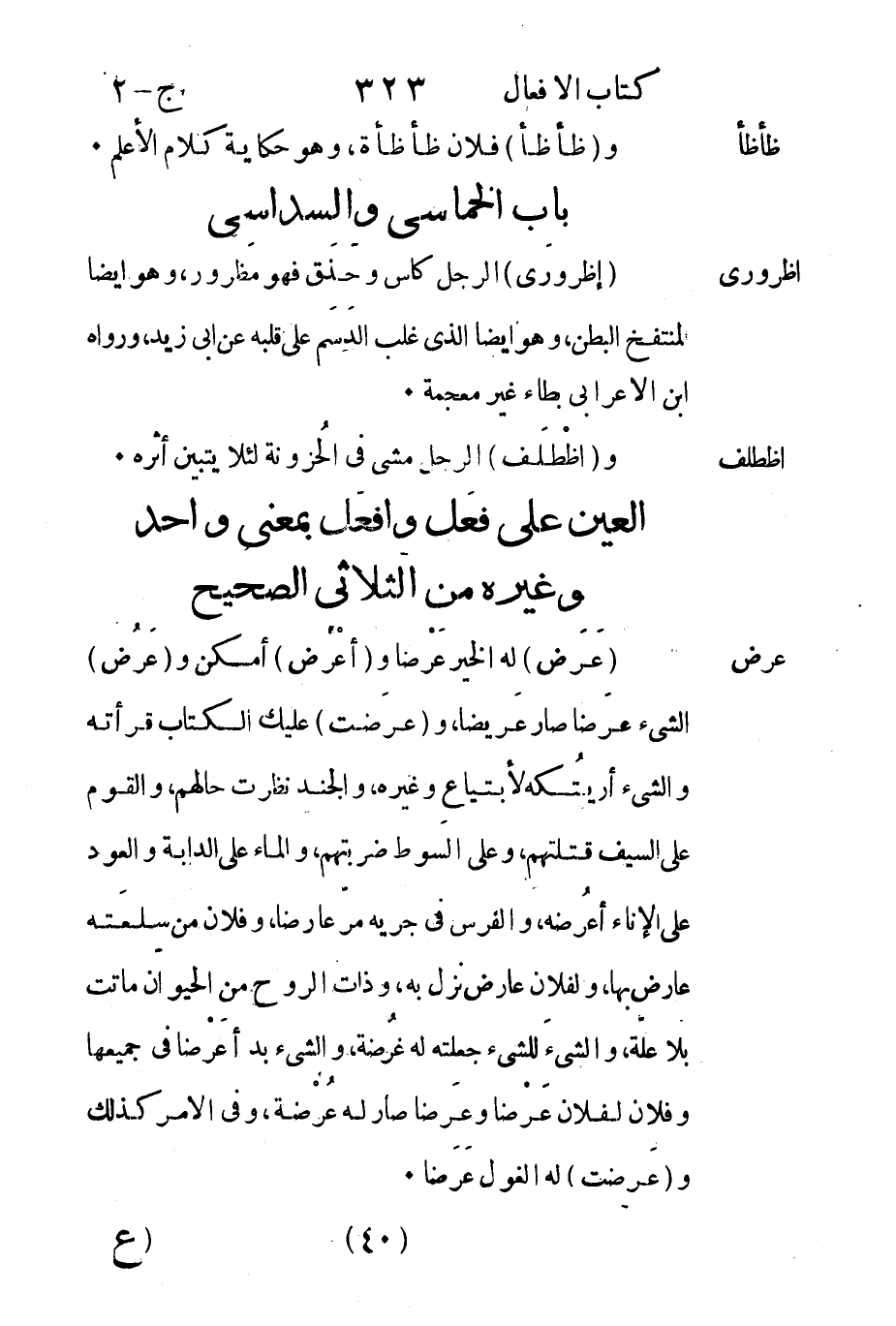 العين على فعَل وأفعَل بمعنى واحد وغيره من الثَلاثي الصحيح.