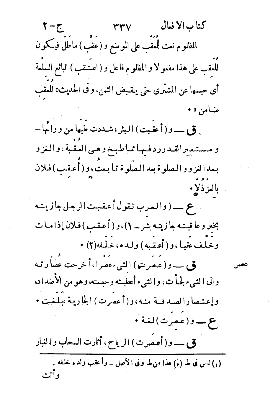 ع - "والعرب تقول أعقبت الرجل جازيته بخير وعاقبته جازيته بشرّ"1 و"أعقب" فلان إذا مات وخَلَّف عَقبا و"أعقَبه" ولده خَلَفه2.