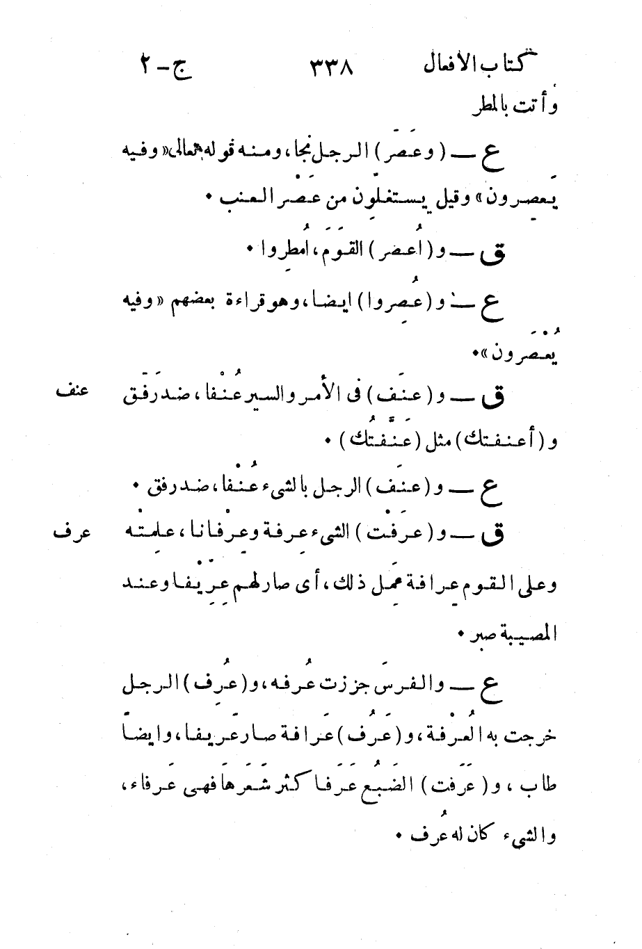 ع - و"عُصِروا" أيضا وهو قراءة بعضهم "وفيه يُعْصَرون".