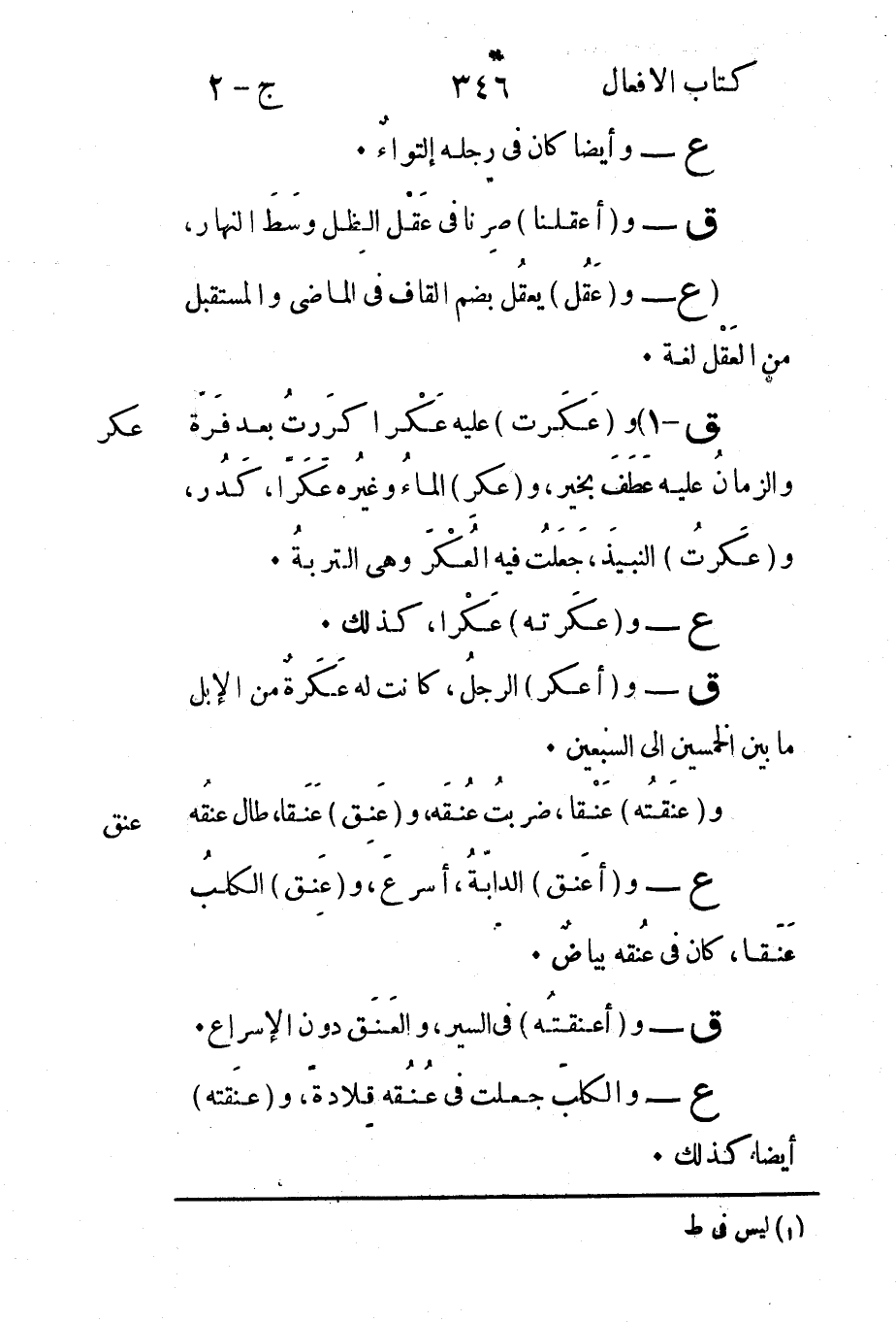 ع - و"عَقُل" يعقلُ بضم القام في الماضي والمستقبل من العَقْل لغة.