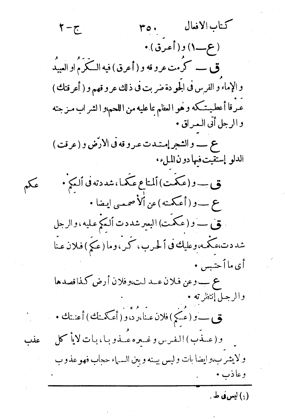 ع - والشجر إمتدت عروقه في الأرْض و"عرقت" الدلو إستقيت فيها دون المِلء.