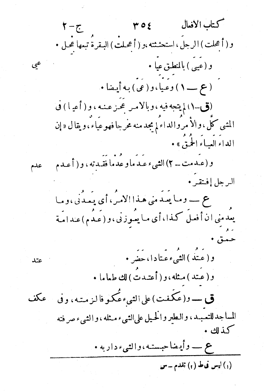 ع -1 وعَيّا و"عَىّ" به أيضاً.
