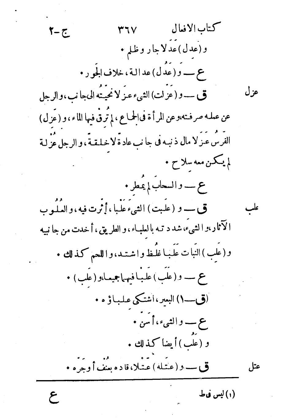 ع - و"عَلَب" عَلْبا فيهما جميعاً و"علَب".
