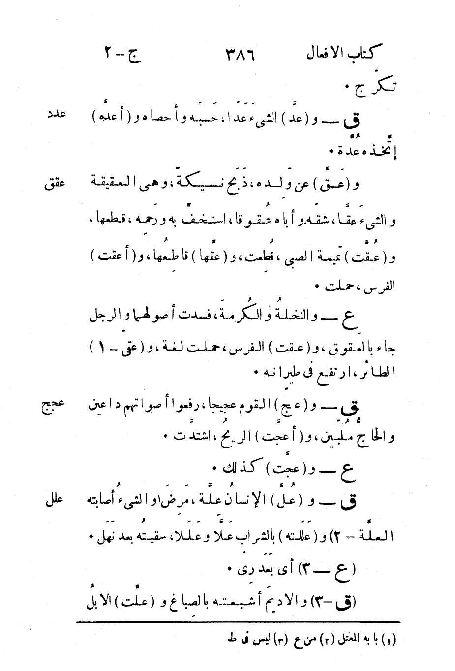 ق -3 والاديمَ أشبعته بالصِباغ و"علَّت" الإبلُ.