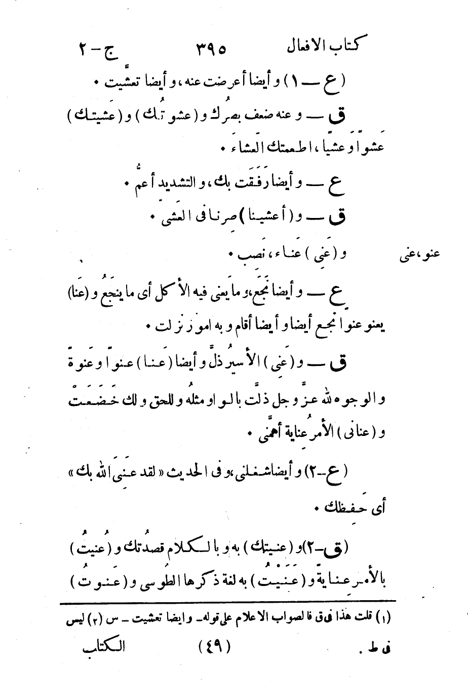 ق -2 وعنيتك به وبالكلام قصدُتك وعُنيتُ بالأمر عِنايةً وعَنَيْتُ به لغة ذكرها الطُوسى وعَنوتُ.