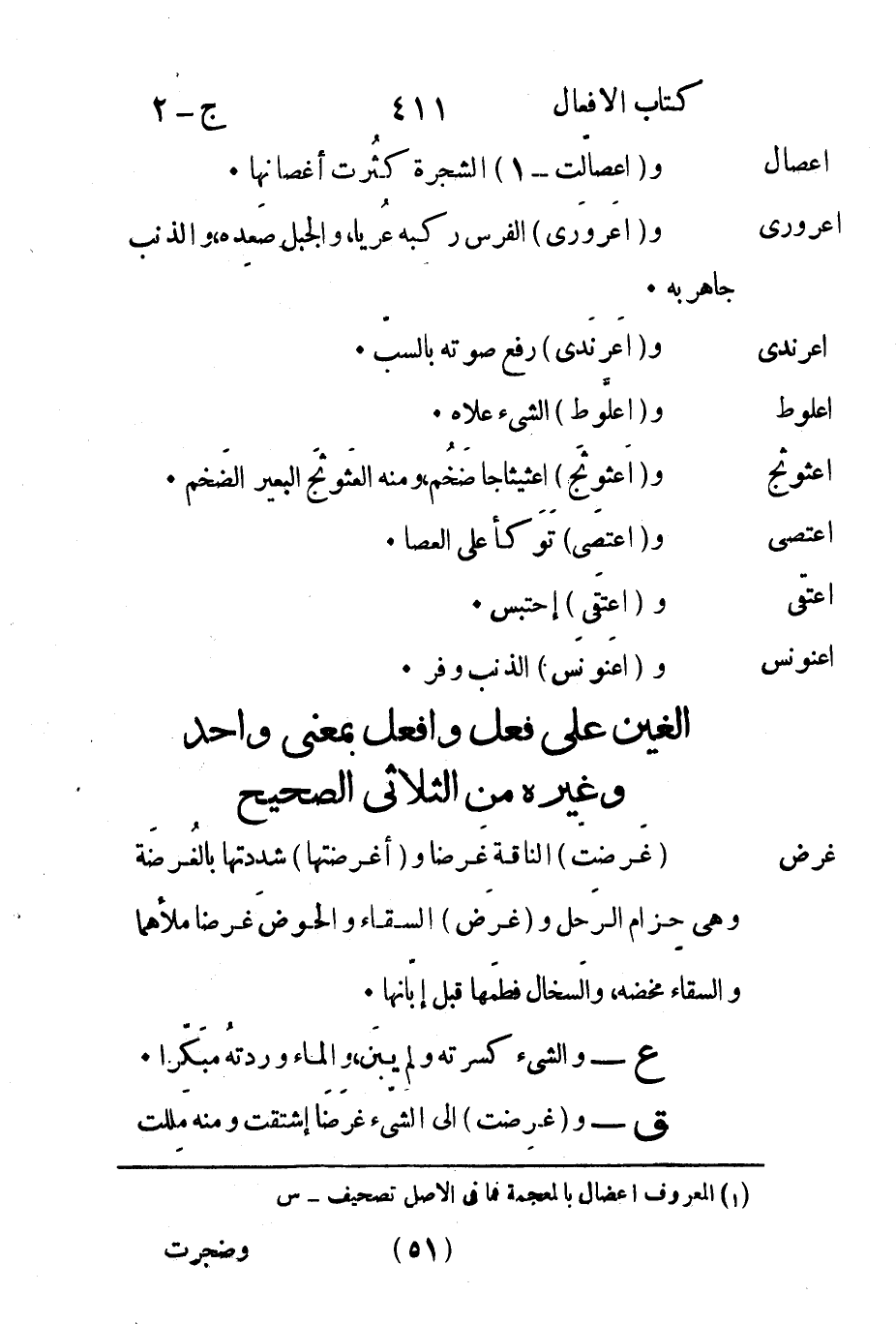 الغين على فعل وافعل بمعنى واحد وغيره من الثلاثي الصحيح.