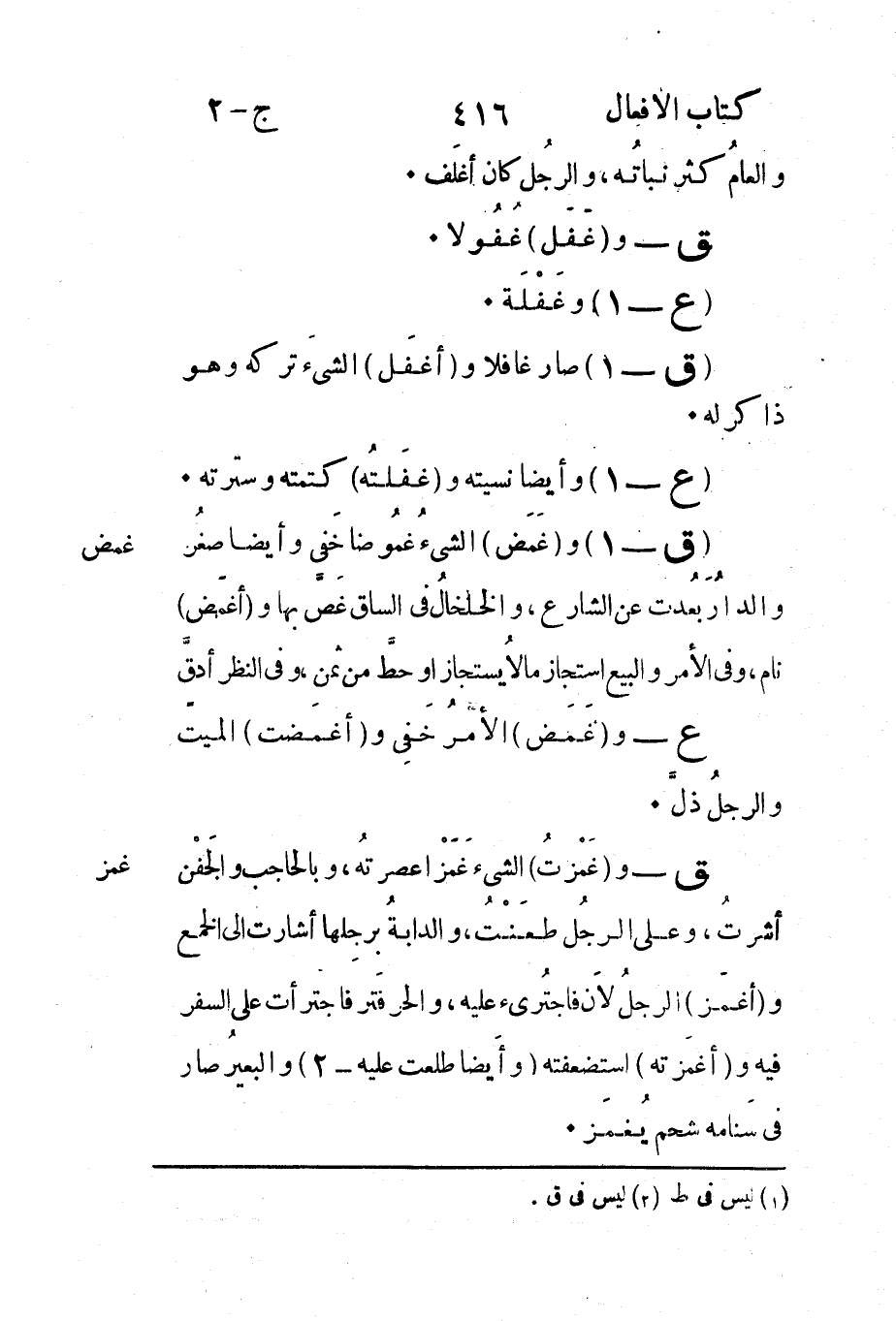ع - وغَمَض الامرُ خَفىِ وأغمَضت الميتً والرجلُ ذلَّ.