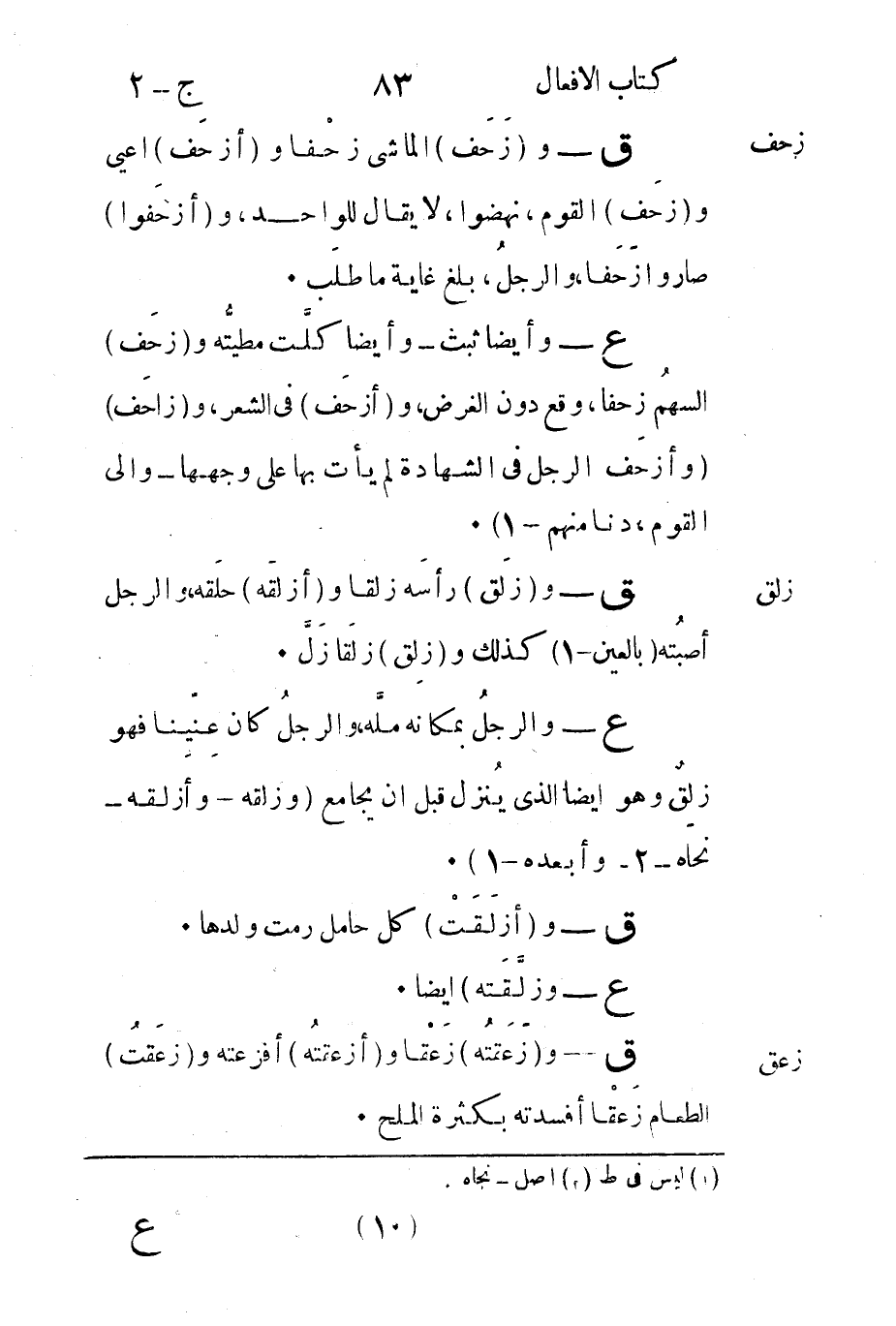 ع - وأيضا ثبت وأيضا كلَّت مطيَّتُه و"زحَف" السهمُ زحفا وقد دون الغرض و"أزحَف" في الشعر و"زاحَف" "وأزحَف الرجل في الشهادة لم يأت بها على وجهها وإلى القوم دنا منهم1.
