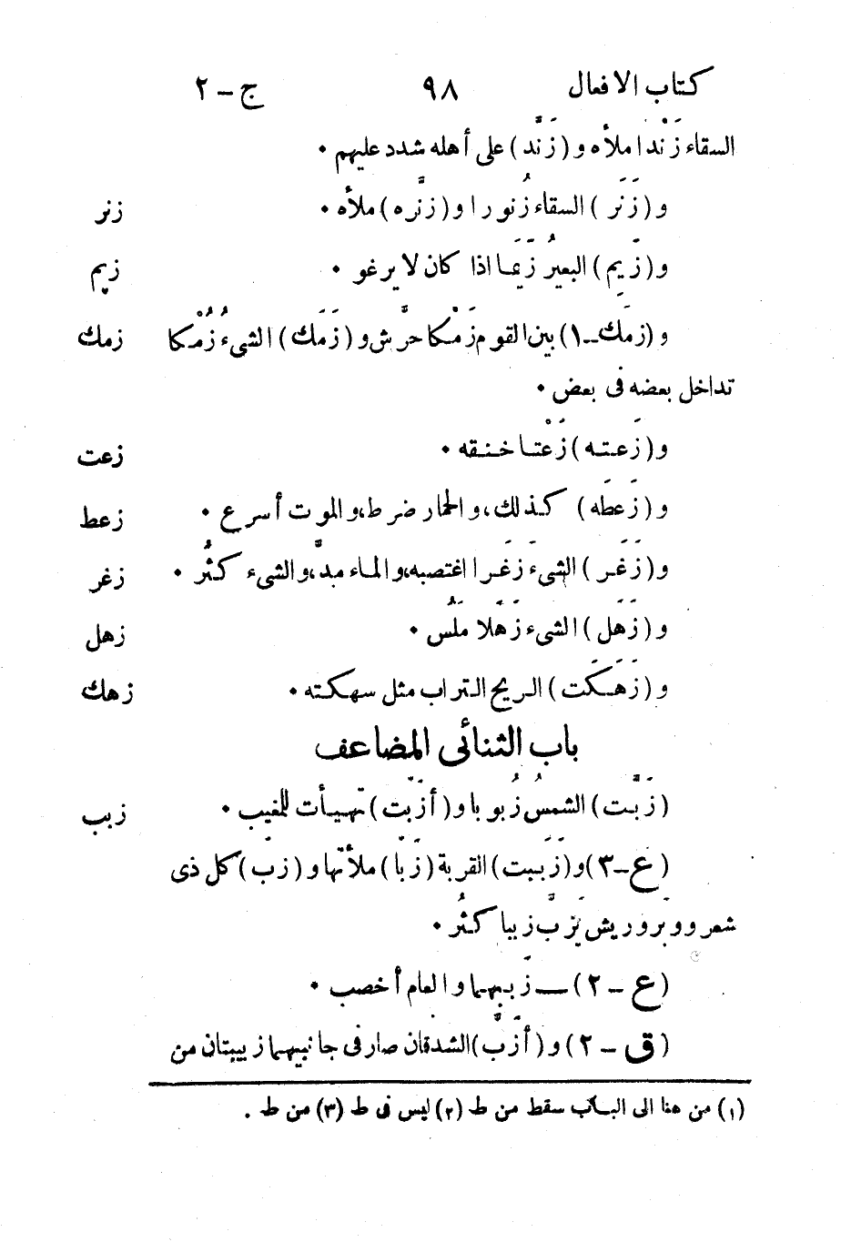كتاب كتاب الأفعال (اسم الجزء: 2)