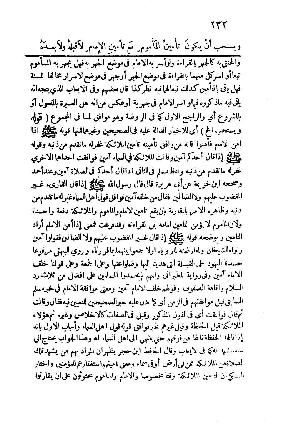 ويوضحه قوله - صلى الله عليه وسلم - إذا قال {غَيْرِ الْمَغْضُوبِ عَلَيْهِمْ وَلَا الضَّالِّينَ (7)} [الفاتحة: 7] فقولوا آمين رواه الشيخان ولمعارضته لما روياه أولًا جمعوا بينهما بما قررناه وروى البيهقي مرفوعًا حسدنا اليهود على القبلة التي هدينا إليها وضلوا عنها وعلى الجمعة وعلى قولنا خلف الإمام آمين وفي رواية للطبراني وأنهم لم يحسدوا المسلمين على أفضل من ثلاث رد السلام وإقامة الصفوف وقولهم خلف الإمام آمين ومعنى موافقة الإمام في خبر مسلم السابق قبل موافقتهم في الزمن أي كما يدل عليه خبر الصحيحين للتعيين فيه فقال وقالت ثم قال فوافقت أي في القول المذكور وقيل في الصفات كالإخلاص وغيره ثم هؤلاء الملائكة قيل الحفظة وقيل غيرهم لخبر فوافق قوله أهل السماء وأجاب الأول بأنه إذا قالها الحفظة قالها من فوقهم حتى ينتهي إلى أهل السماء اهـ. وهذا الجواب يحتاج إلى سند يشهد له كما في الإيعاب وقال الحافظ ابن حجر يظهر أن المراد بهم من يشهد تلك الصلاة من الملائكة ممن في أرض أو في سماء ومعنى تأمينهم استغفارهم للمؤمنين واختار السبكي إن لتأمين الملائكة وقتًا مخصوصًا والإمام والمأموم محثوثون على إن يقارنوا