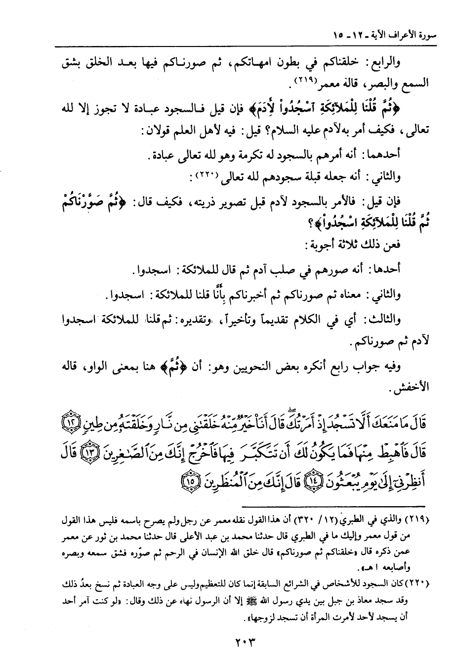 والرابع: خلقناكم في بطون أمهاتكم , ثم صورناكم فيها بعد الخلق بشق السمع والبصر , قاله معمر. {ثُمَّ قُلْنَا لِلْمَلآئِكَةِ اسْجُدُواْ لأَدَمَ} فإن قيل فالسجود عبادة لا تجوز إلا الله تعالى , فكيف أمر به لآدم عليه السلام؟ قيل: فيه لأهل العلم قولان: أحدهما: أنه أمرهم بالسجود له تكرمة وهو لله تعالى عبادة. والثاني: أنه جعله قبلة سجودهم لله تعالى. فإن قيل: فالأمر بالسجود لآدم قبل تصوير ذريته , فكيف قال: {ثُمَّ صَوَّرْنَاكُمْ ثُمَّ قُلْنَا لِلْمَلآئِكَةِ اسْجُدُواْ}؟ فعن ذلك ثلاثة أجوبة: أحدها: أنه صورهم في صلب آدم ثم قال للملائكة: اسجدوا. والثاني: معناه ثم صورناكم ثم أخبرناكم بِأَنَّا قلنا للملائكة: اسجدوا. والثالث: اي في الكلام تقديماً وتأخيراً , وتقديره: ثم قلنا للملائكة اسجدوا لآدم ثم صورناكم. وفيه جواب رابع أنكره بعض النحويين وهو: أن {ثُمَّ} هنا بمعنى الواو , قاله الأخفش.