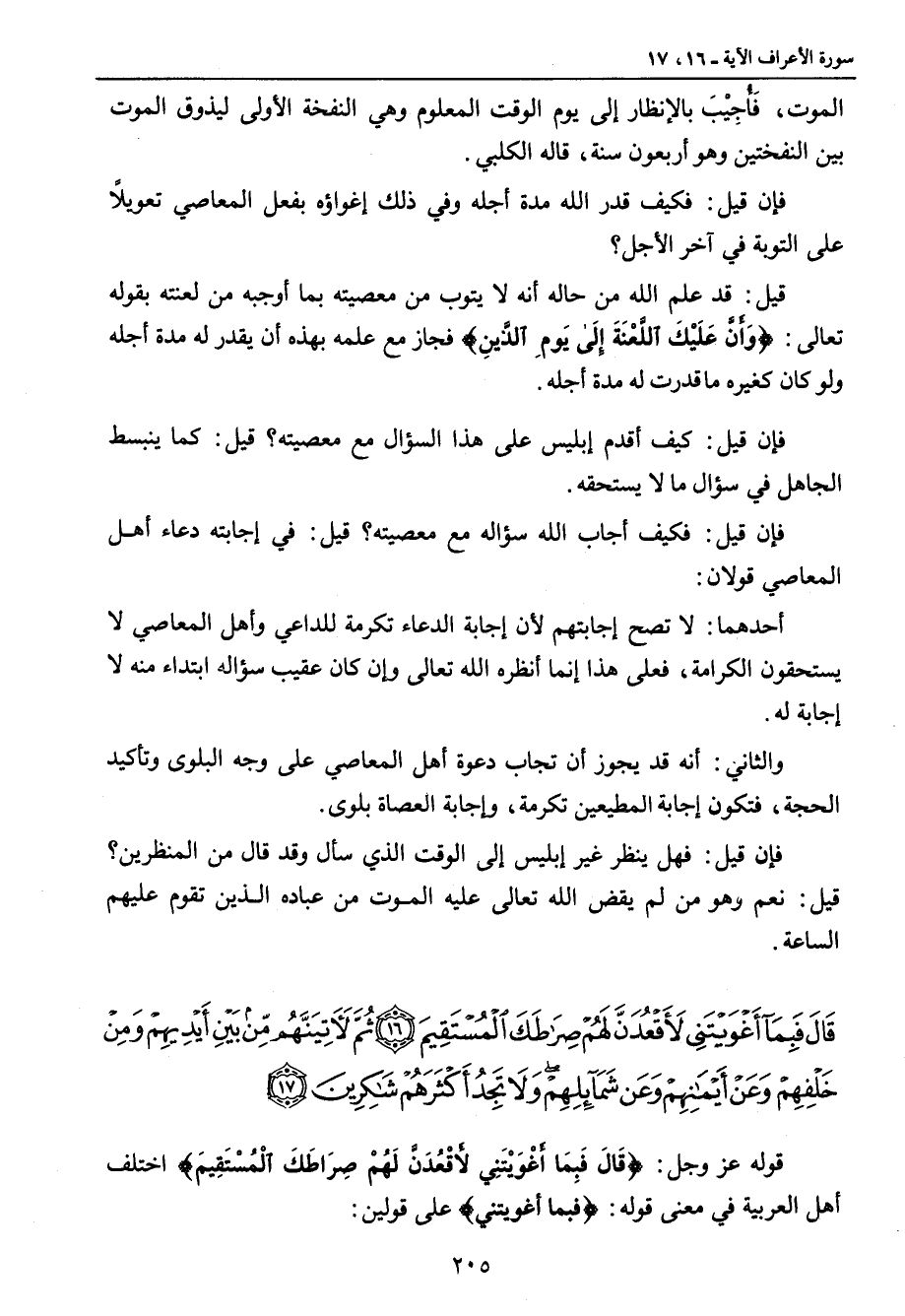 {قال فبما أغويتني لأقعدن لهم صراطك المستقيم ثم لآتينهم من بين أيديهم ومن خلفهم وعن أيمانهم وعن شمائلهم ولا تجد أكثرهم شاكرين} قوله عز وجل: {قَالَ فَبِمَا أَغْوَيْتَنِي لأَقْعُدَنَّ لَهُمْ صِرَاطَكَ الْمُسْتَقِيمَ} اختلف أهل العربية في معنى قوله: {فبما أغويتني} على قولين: