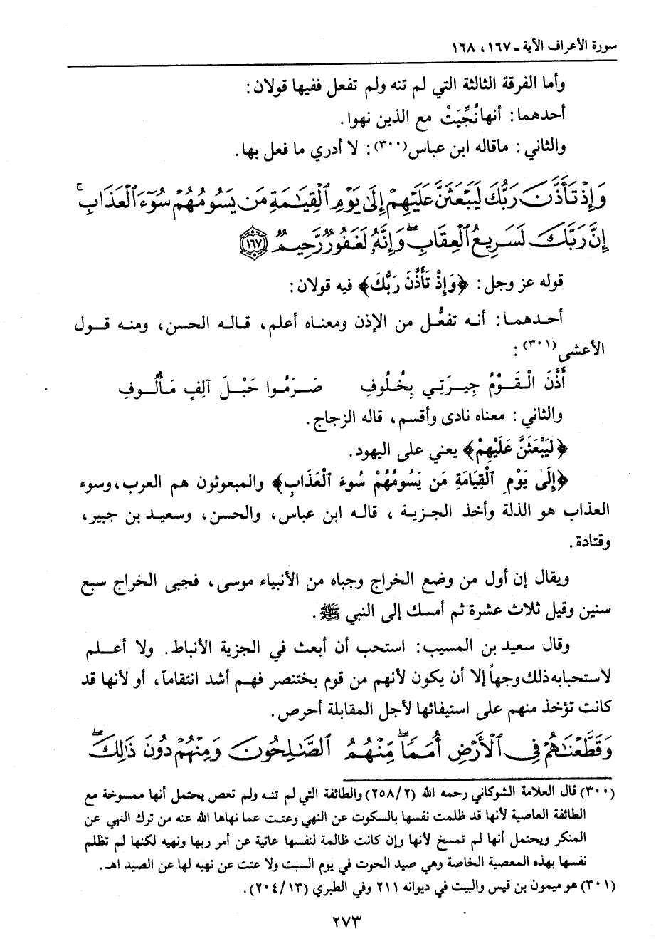 والثاني: معناه نادى وأقسم , قاله الزجاج. {ليَبْعَثَنَّ عَلَيْهِمْ} يعني على اليهود. {إِلَى يَوْمِ الْقِيَامَةِ مَن يَسُومُهُمْ سُوءَ الْعَذَابِ} والمبعوثون هم العرب , وسوء العذاب هو الذلة وأخذ الجزية , قاله ابن عباس , والحسن , وسعيد بن جبير , وقتادة. ويقال إن أول من وضع الخراج وجباه من الأنبياء موسى , فجبى الخراج سبع سنين وقيل ثلاث عشرة ثم أمسك إلى النبي صلى الله عليه وسلم. وقال سعيد بن المسيب: استحب أن أبعث في الجزية الأنباط. ولا أعلم لاستحبابه ذلك وجهاً إلا أن يكون لأنهم من قوم بختنصر فهم أشد انتقاماً , أو لأنها قد كانت تؤخذ منهم على استيفائها لأجل المقابلة أحرص.