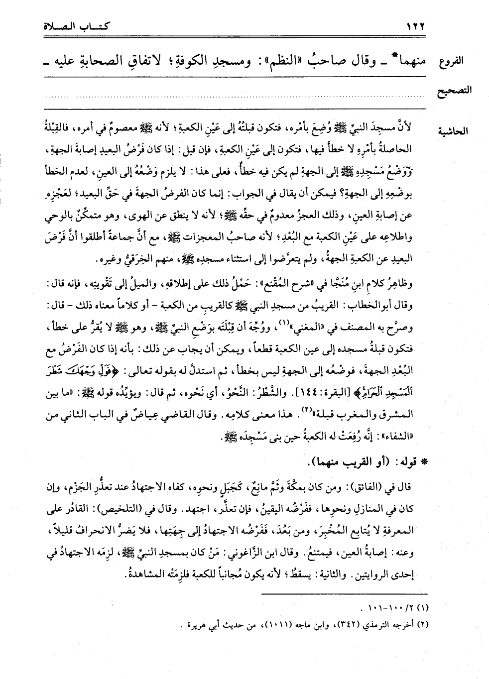 مِنْهُمَا. وَقَالَ صَاحِبُ النَّظْمِ: وَمَسْجِدُ الْكُوفَةِ، لِاتِّفَاقِ الصحابة عليه
