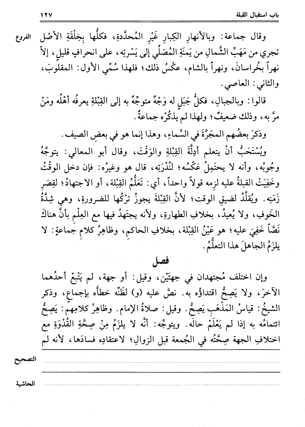 وَقَالَ جَمَاعَةٌ: وَبِالْأَنْهَارِ الْكِبَارِ غَيْرِ الْمُحَدَّدَةِ، فَكُلُّهَا بِخِلْقَةِ الْأَصْلِ تَجْرِي مِنْ مَهَبِّ الشِّمَالِ مِنْ يَمْنَةِ الْمُصَلِّي إلَى يَسْرَتِهِ، عَلَى انْحِرَافٍ قَلِيلٍ، إلَّا نَهْرًا بِخُرَاسَانَ، وَنَهْرًا بِالشَّامِ، عَكْسُ ذَلِكَ، فَلِهَذَا سُمِّيَ الْأَوَّلُ: الْمَقْلُوبَ، وَالثَّانِي: الْعَاصِيَ.