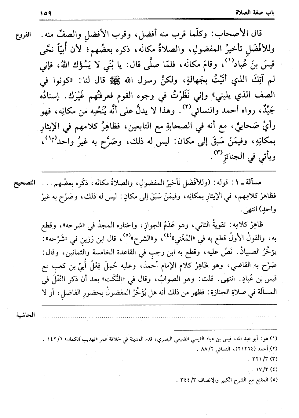 قَالَ الْأَصْحَابُ: وَكُلَّمَا قَرَّبَ مِنْهُ أَفْضَلُ، وَقَرَّبَ الْأَفْضَلَ وَالصَّفَّ مِنْهُ. وَلِلْأَفْضَلِ تَأْخِيرُ الْمَفْضُولِ، وَالصَّلَاةُ مَكَانَهُ، ذَكَرَهُ بَعْضُهُمْ، لِأَنَّ أُبَيًّا نَحَّى قَيْسَ بن عباد1، وَقَامَ مَكَانَهُ، فَلَمَّا صَلَّى قَالَ: يَا بُنَيَّ لَا يَسُؤْك اللَّهُ، فَإِنِّي لَمْ آتِك الَّذِي أَتَيْت بِجَهَالَةٍ، وَلَكِنَّ رَسُولَ اللَّهِ صَلَّى اللَّهُ عَلَيْهِ وَسَلَّمَ قَالَ لَنَا: "كُونُوا فِي الصَّفِّ الَّذِي يَلِينِي" وَإِنِّي نَظَرْت فِي وُجُوهِ الْقَوْمِ فَعَرَفْتُهُمْ غَيْرَك، إسْنَادُهُ جَيِّدٌ، رَوَاهُ أَحْمَدُ وَالنَّسَائِيُّ2، وَهَذَا لَا يَدُلُّ عَلَى أَنَّهُ يُنَحِّيه مِنْ مَكَانِهِ فَهُوَ رَأْيُ صَحَابِيٍّ، مَعَ أَنَّهُ فِي الصَّحَابَةِ مَعَ التَّابِعِينَ، فَظَاهِرُ كَلَامِهِمْ: فِي الْإِيثَارِ بِمَكَانِهِ، وَفِيمَنْ سَبَقَ إلَى مَكَان لَيْسَ لَهُ ذَلِكَ وَصَرَّحَ بِهِ غَيْرُ وَاحِدٍ "م 1" وَيَأْتِي في الجنائز3.