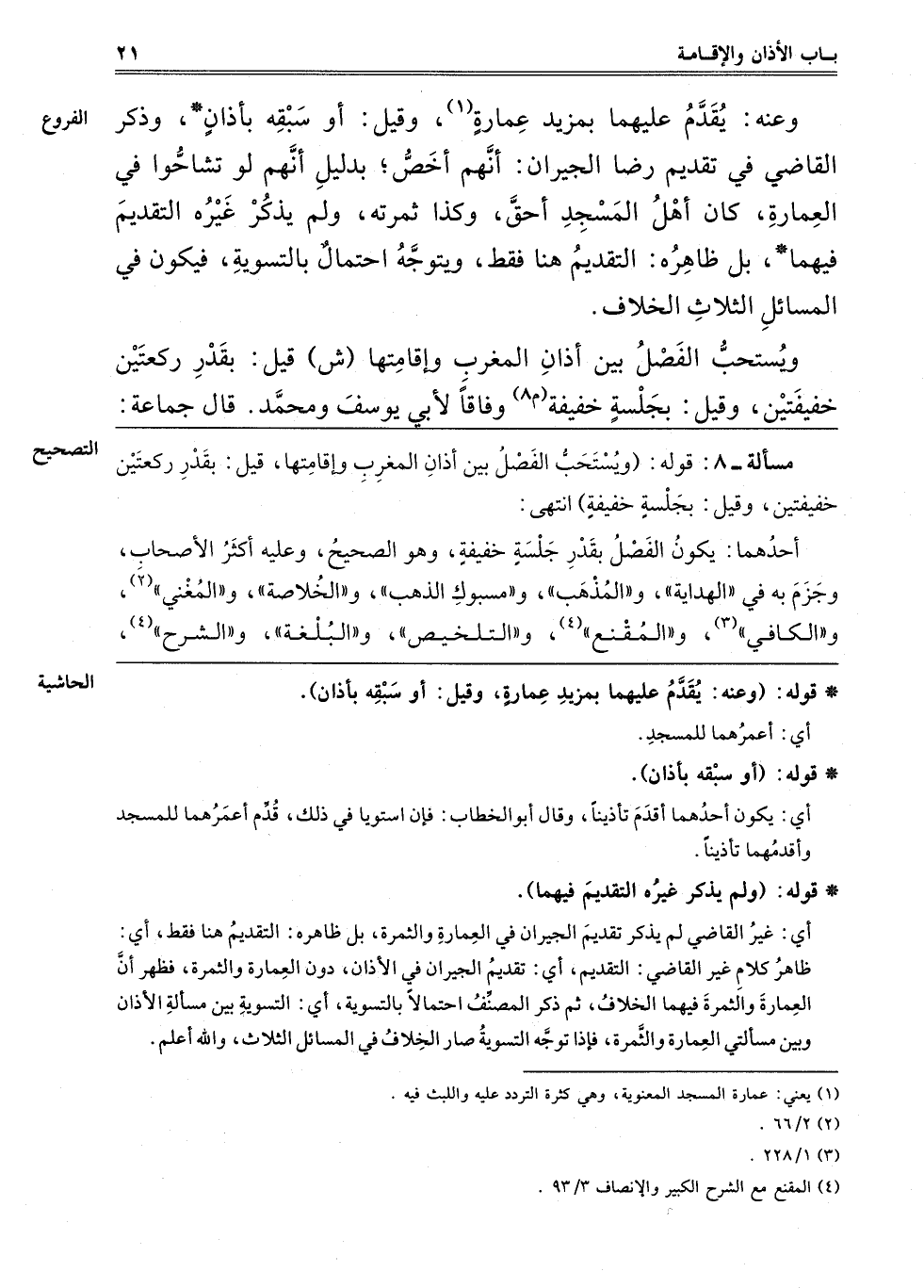 ـــــــــــــــــــــــــــــQ"مسألة 8" قوله: وَيُسْتَحَبُّ الْفَصْلُ بَيْنَ أَذَانِ الْمَغْرِبِ وَإِقَامَتِهَا، قِيلَ: بِقَدْرِ رَكْعَتَيْنِ خَفِيفَتَيْنِ، وَقِيلَ: بِجِلْسَةٍ خَفِيفَةٍ، انْتَهَى.