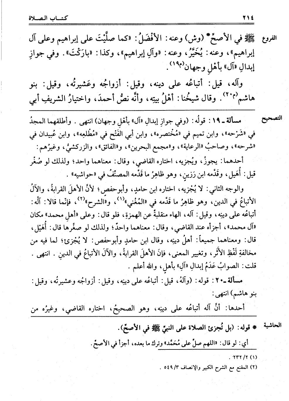 ـــــــــــــــــــــــــــــQمَسْأَلَةٌ 19:: قَوْلُهُ وَفِي جَوَازِ إبْدَالِ آلِ بِأَهْلِ وَجْهَانِ، انْتَهَى، وَأَطْلَقَهَا الْمَجْدُ فِي شَرْحِهِ، وَابْنُ تَمِيمٍ فِي مُخْتَصَرِهِ، وَابْنُ أَبِي الْفَتْحِ فِي مُطْلِعِهِ، وَابْنُ عُبَيْدَانَ فِي شَرْحِهِ، وَصَاحِبُ الرِّعَايَةِ وَمَجْمَعِ الْبَحْرَيْنِ وَالْفَائِقِ وَالزَّرْكَشِيُّ وَغَيْرُهُمْ.